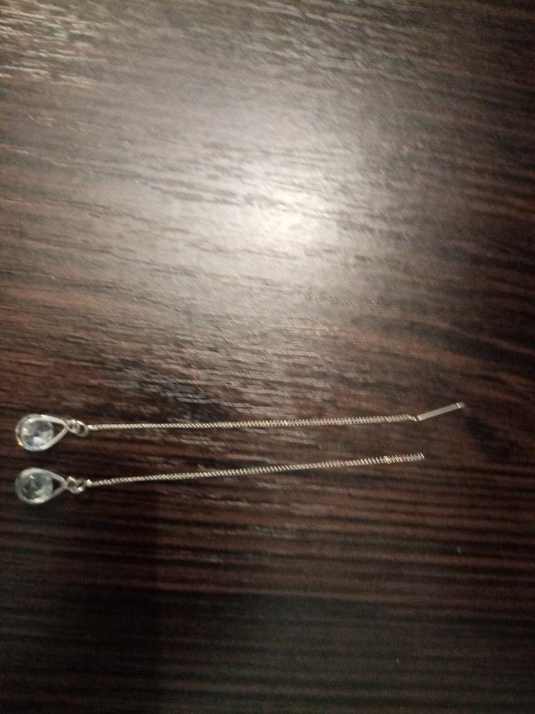 Women Teardrop Cubic Zirconia Threader Long Chain Line Thread Dangle Earrings