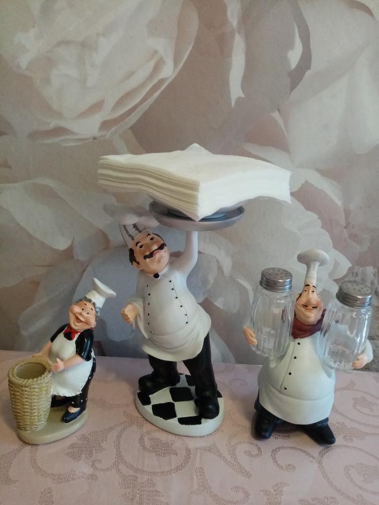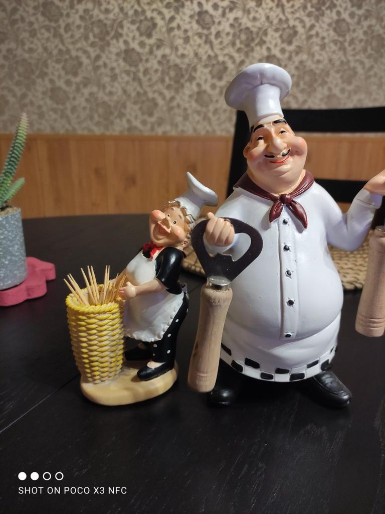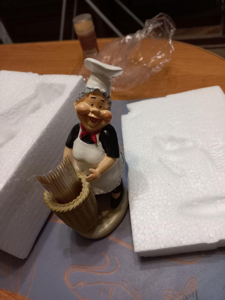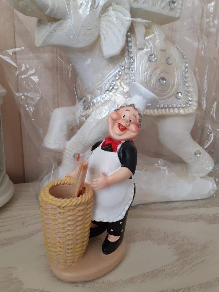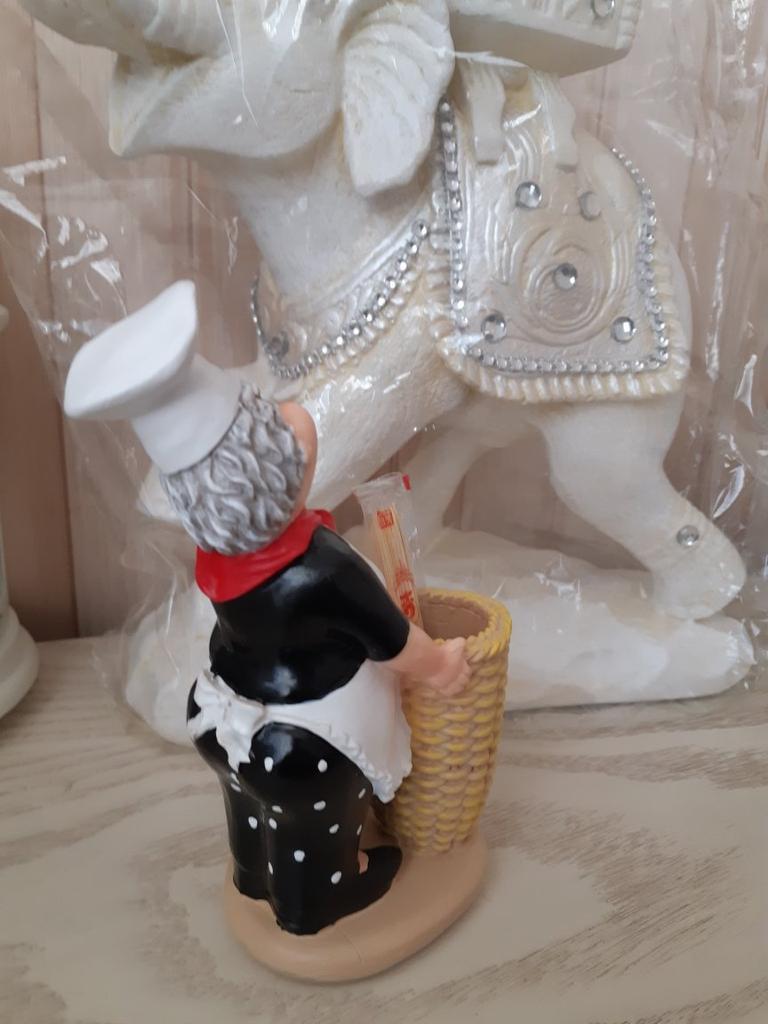 Cute cook! She fits into the ensemble with the chef holding a bottle cart. I recommend to buy!