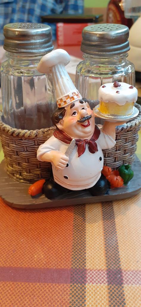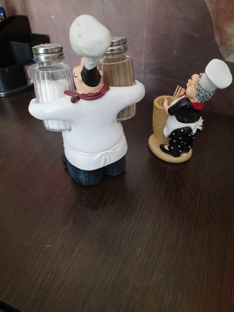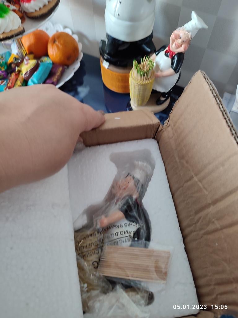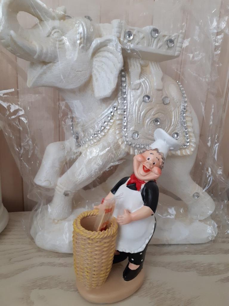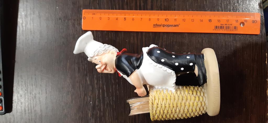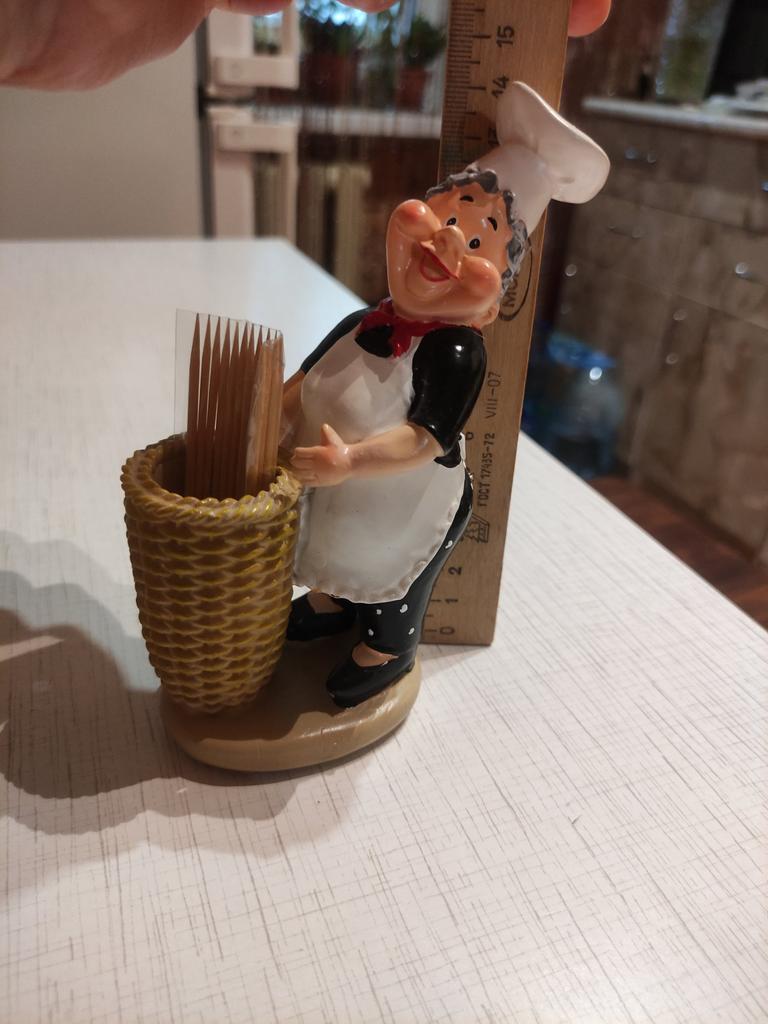Cute cook! She fits into the ensemble with the chef holding a bottle cart. I recommend to buy!