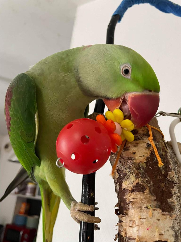 - [ ] Small ball and bead toys for small cockatiel conure genus bird… - [ ] I still tested it for my gray from Gabon and big Alexandre 🦜 - [ ] Overall quite solid but actually not for big beaks 😅 - [ ] That didn't prevent them from having a blast with 🪶 - [ ] I was able to recover the small flexible metal rods with which I was able to redo pearl games so great 👍 - [ ] Very good games I recommend.