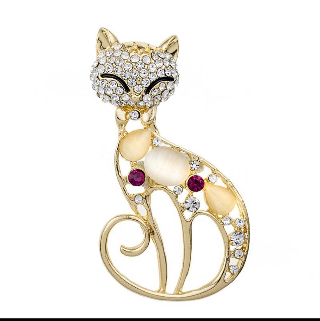 Brooch Rhinestone Cat's Eye Stone Hollow-out Cat Suit Dress Accessories