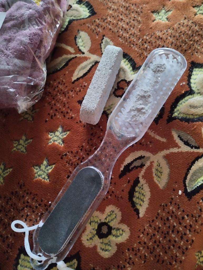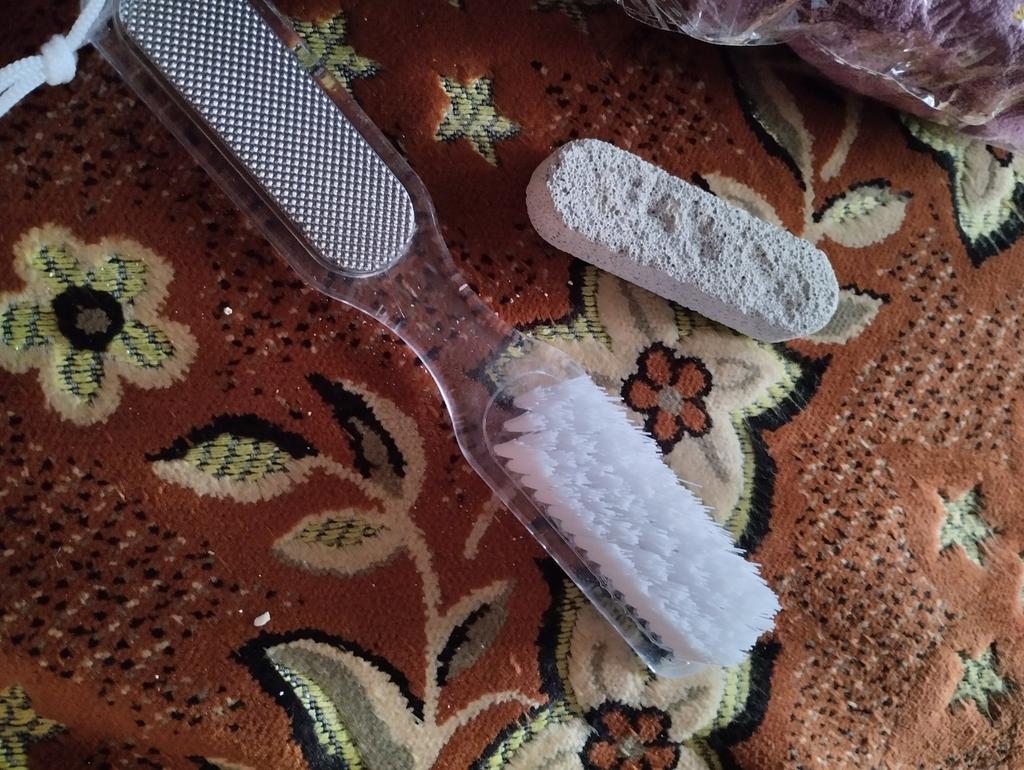 Nice brush and pumice stone. But, unfortunately, the pumice stone crumbled on the second day
