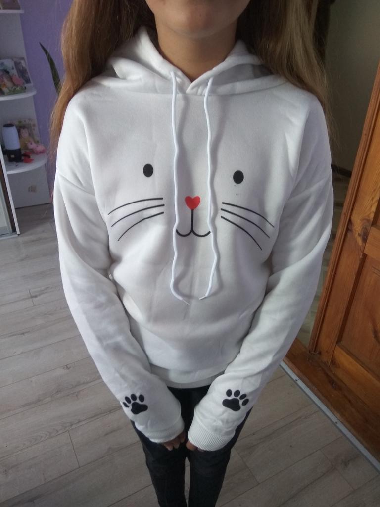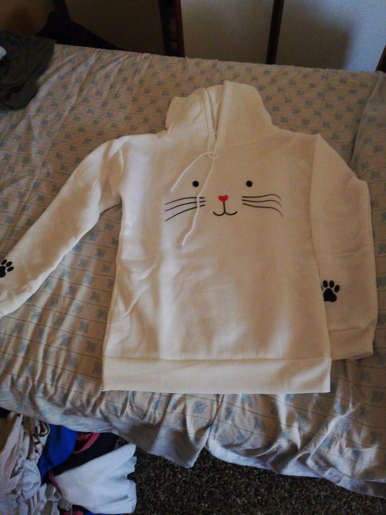 the hoodie is a smaller size fits M and the material is artificial. not pleasant.