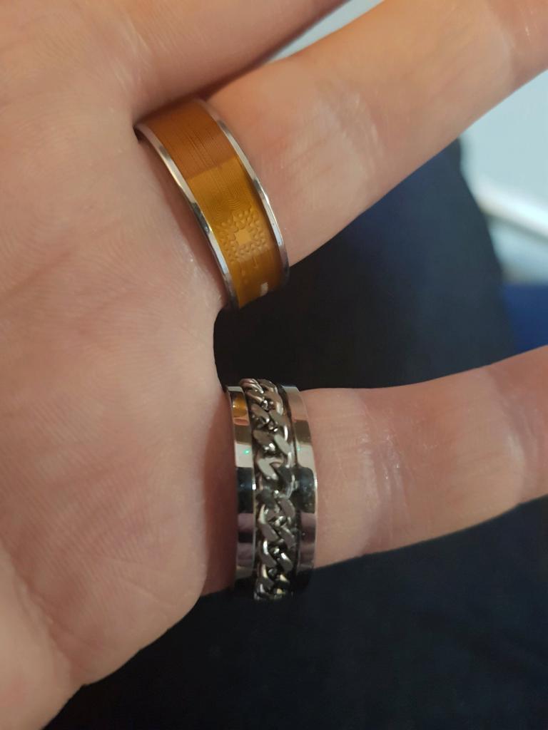 So glad I reordered after first order never arrived because it is more beautiful than the picture and fits perfectly on the thumb of my right hand. The blue chain actually rotates, love it. Thanks, Joom!