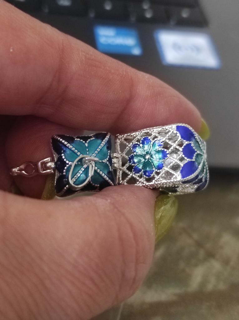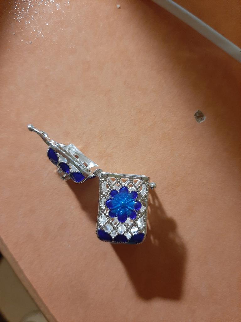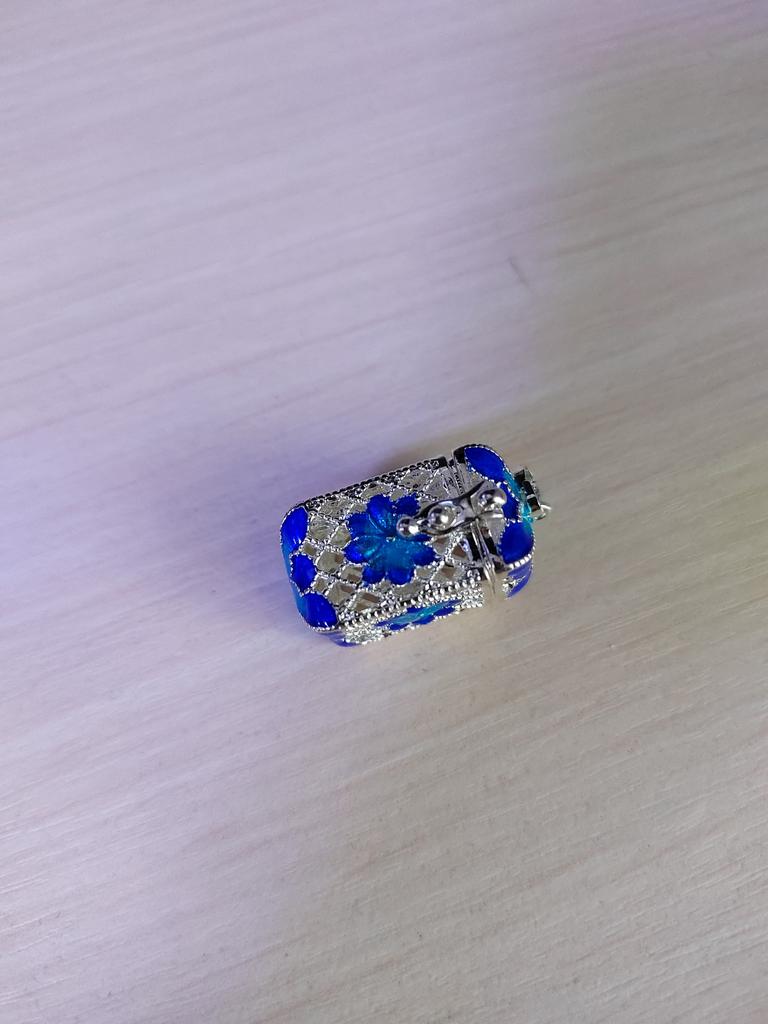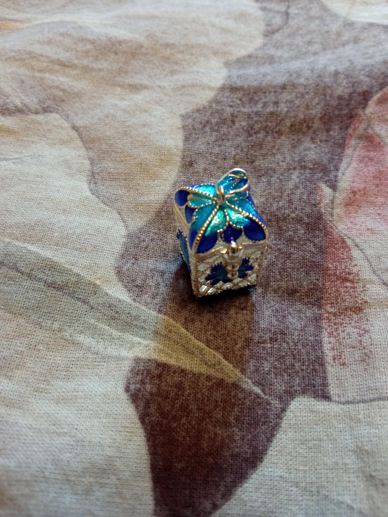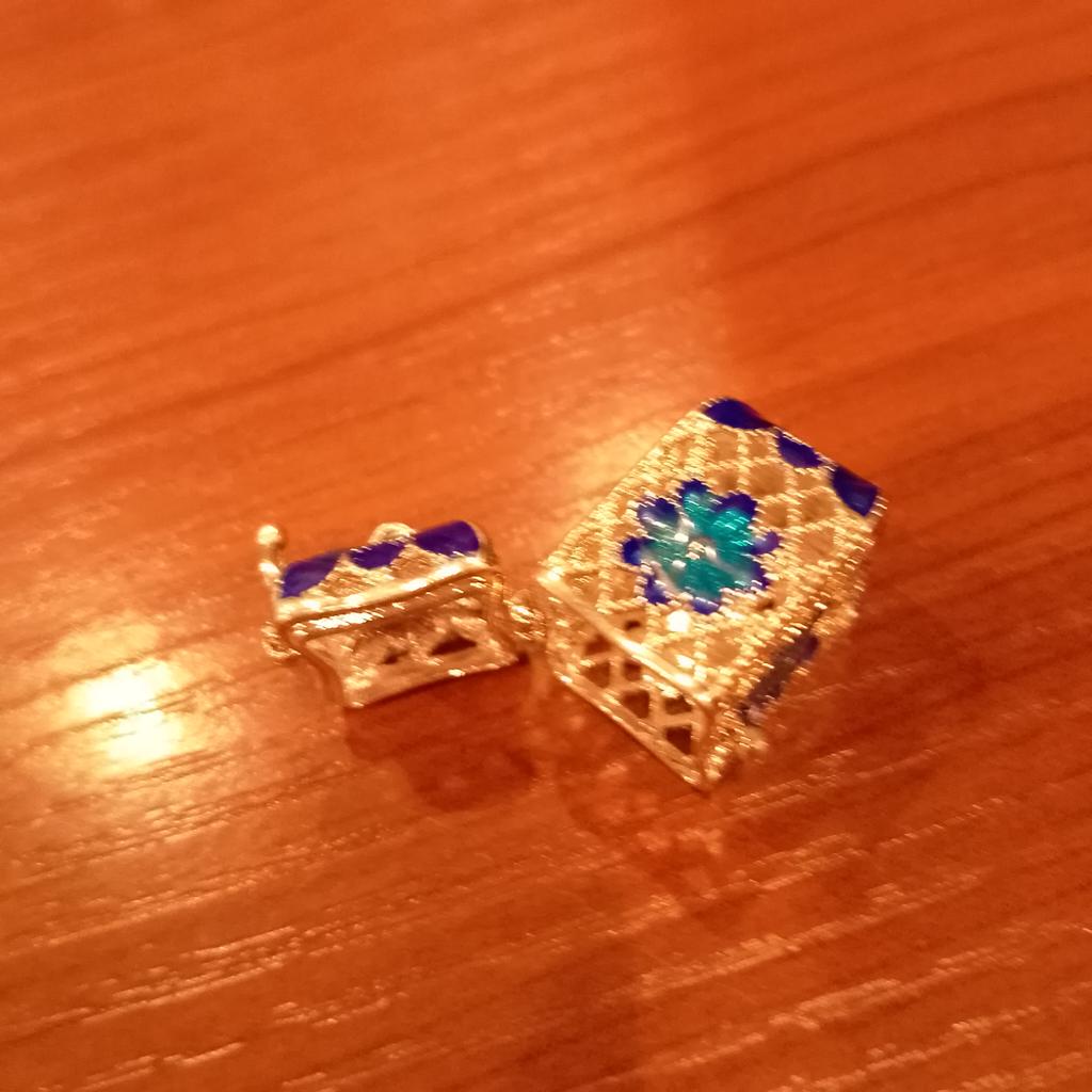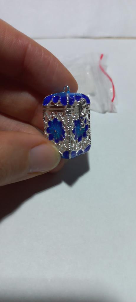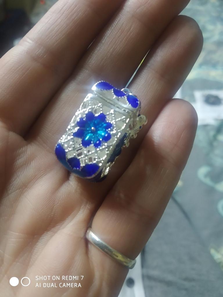 Pretty aroma pendant, quite roomy. The lid works. Silver color. I like.