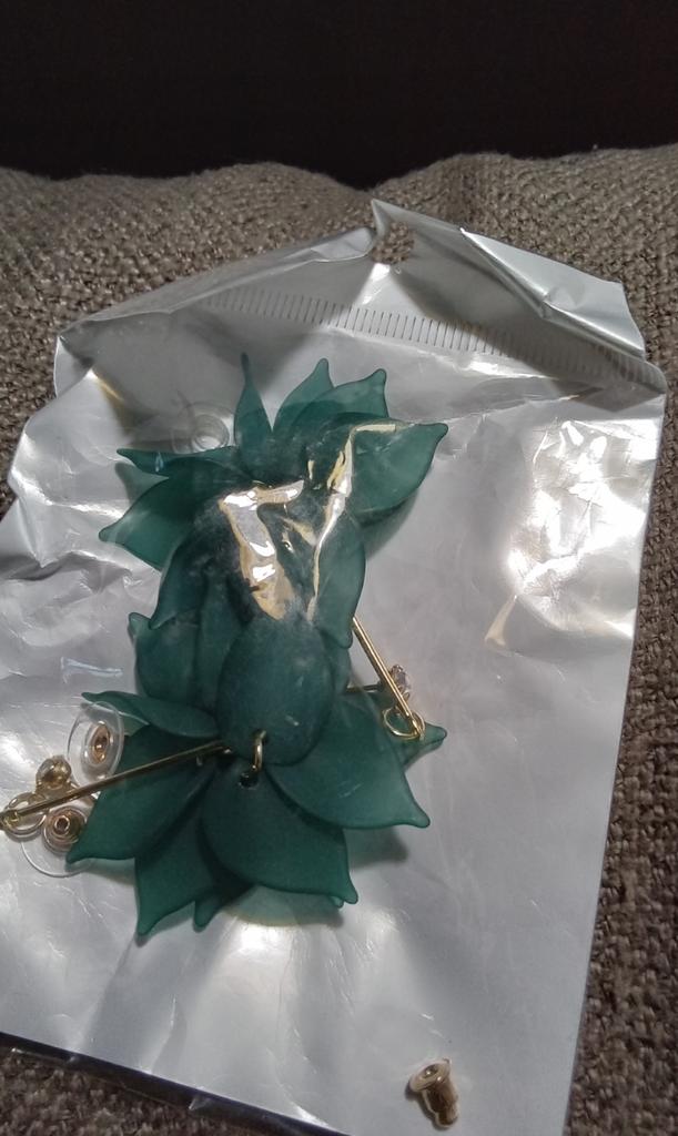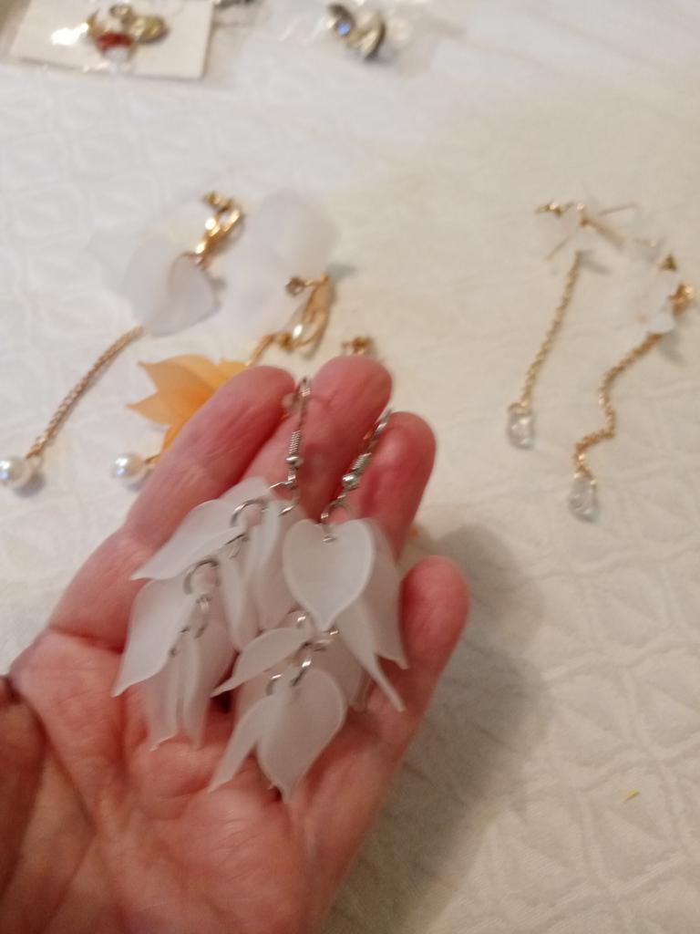 Unfortunately, one earring is missing a pin that is inserted into the ear, but there are 3 plugs