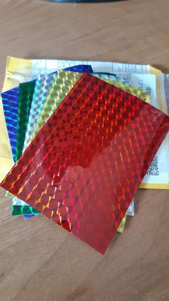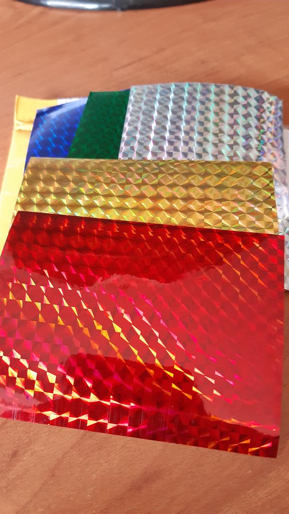 3D self-adhesive foil of 5 different colors. Very good quality, this is the second time I order. I use them to customize artificial fishing lures and make them more attractive to fish. I recommend