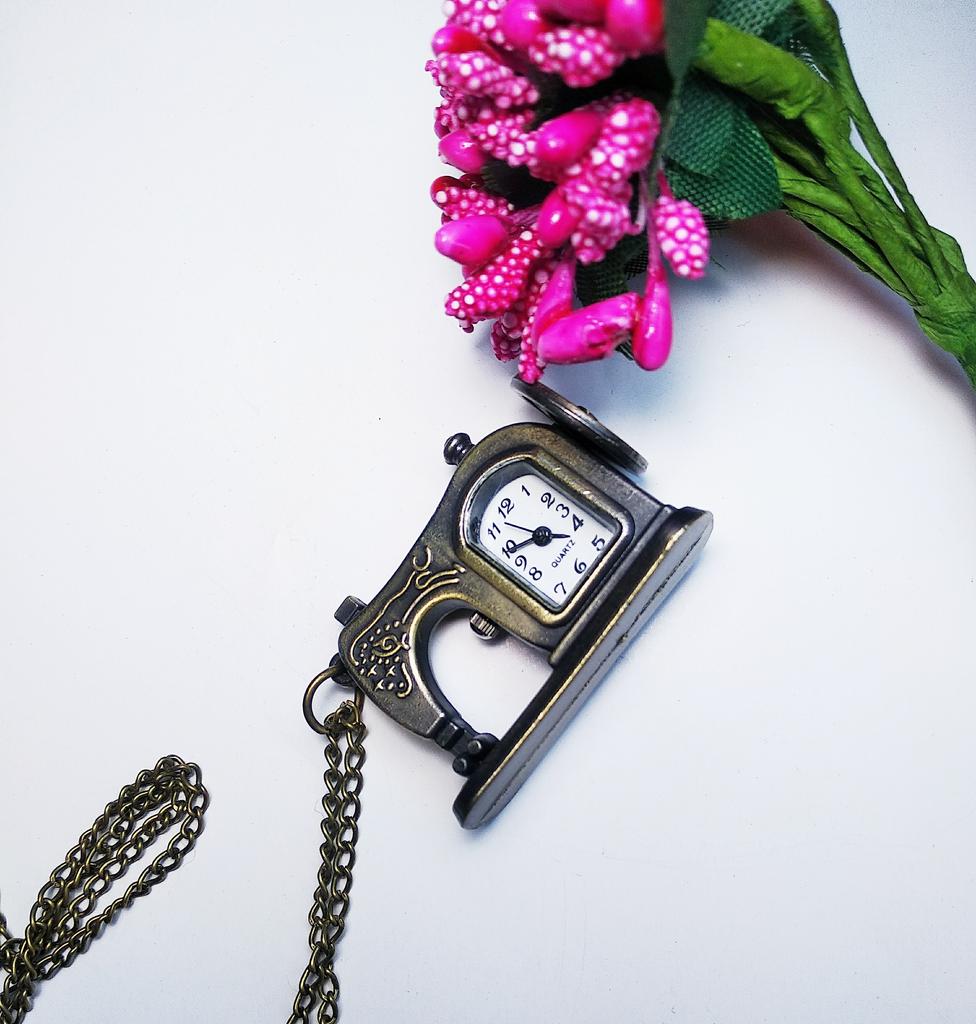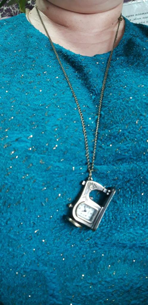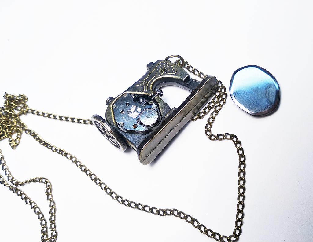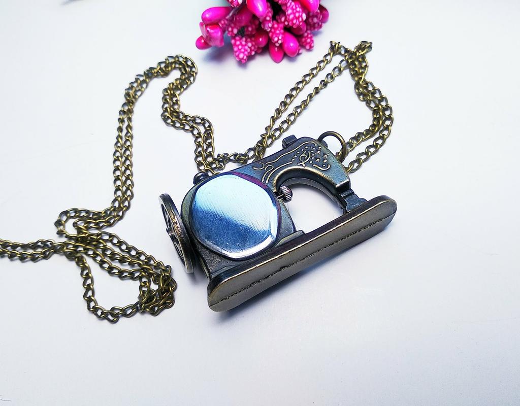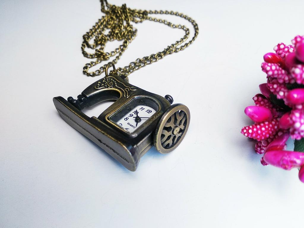A very nice necklace, sewing machine watch. It arrived very quickly, in less than 15 days. The watch works although I couldn't set the time yet.