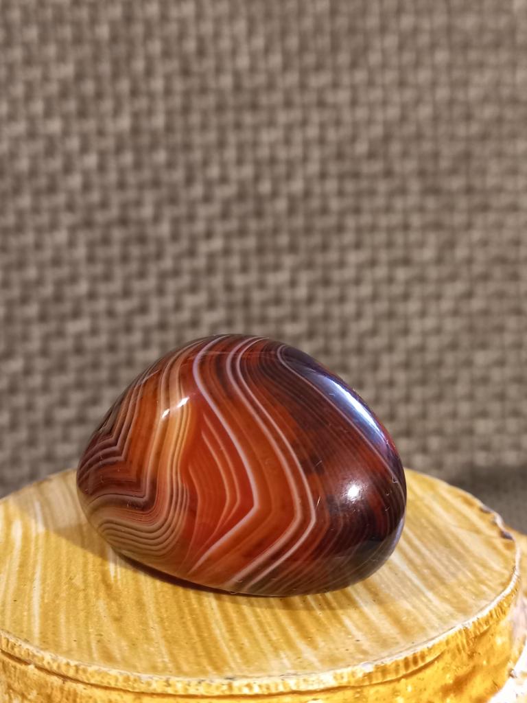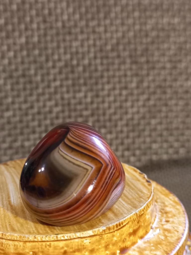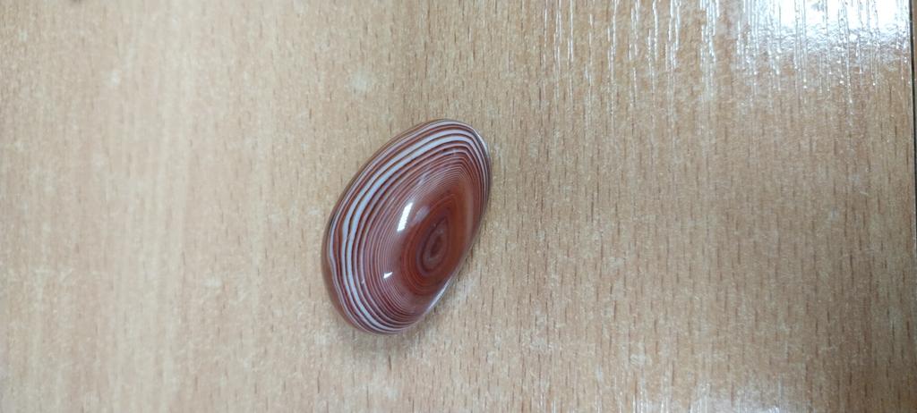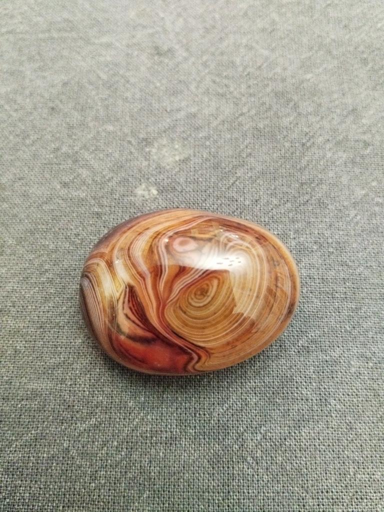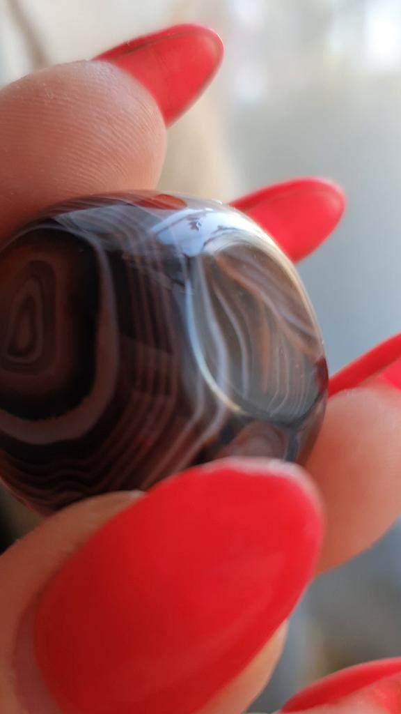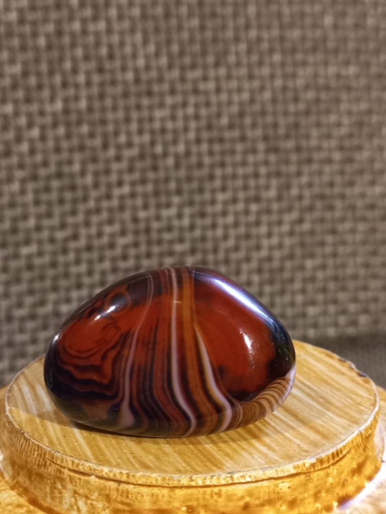 Very beautiful expressive Madagascar agate, I think that's what they call it, with a characteristic deep pattern in the form of stripes. Size 3.7 by 3 cm. I recommend!