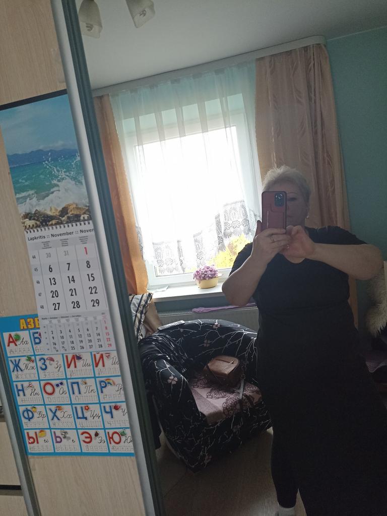 The dress is cool, I put it on and immediately became taller and slimmer. For my 48-50, I took 50, so as not to stick and make a mistake.