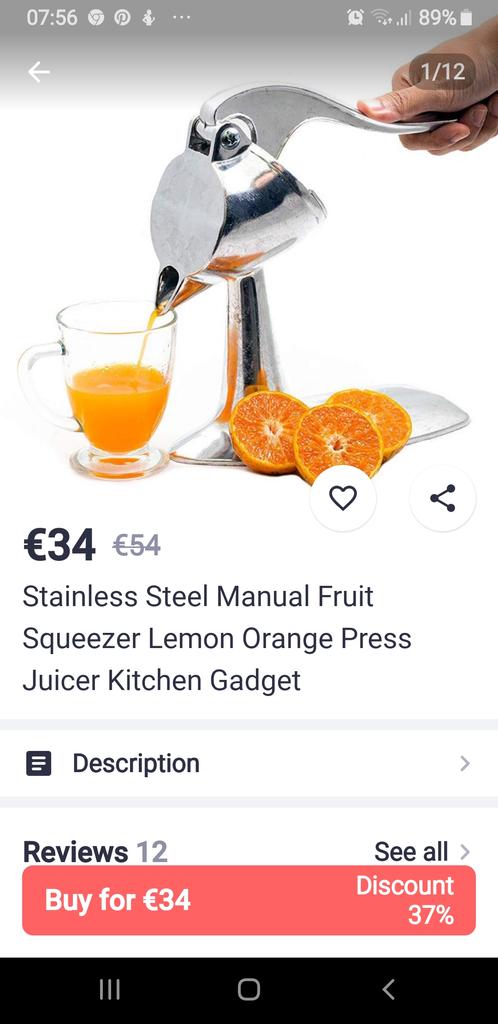 Stainless Steel Manual Fruit Squeezer Lemon Orange Press Juicer Kitchen Gadget
