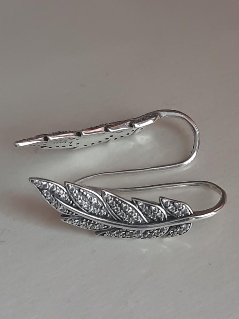 BAMOER Fashion 925 Sterling Silver Vintage Feather Wings Long Drop Earrings