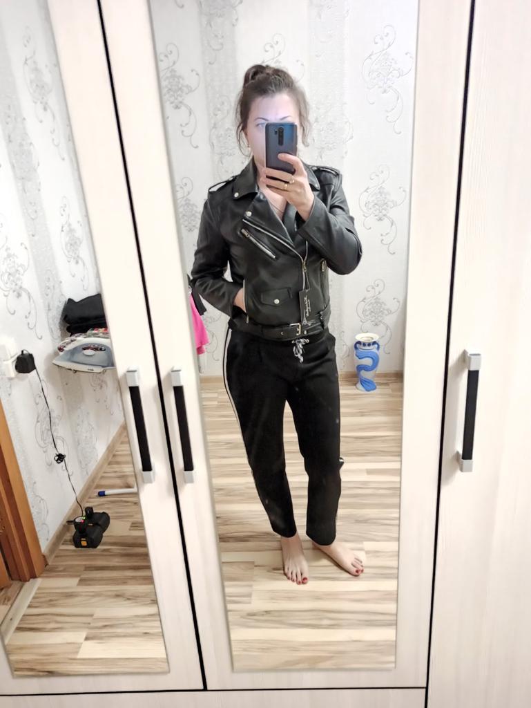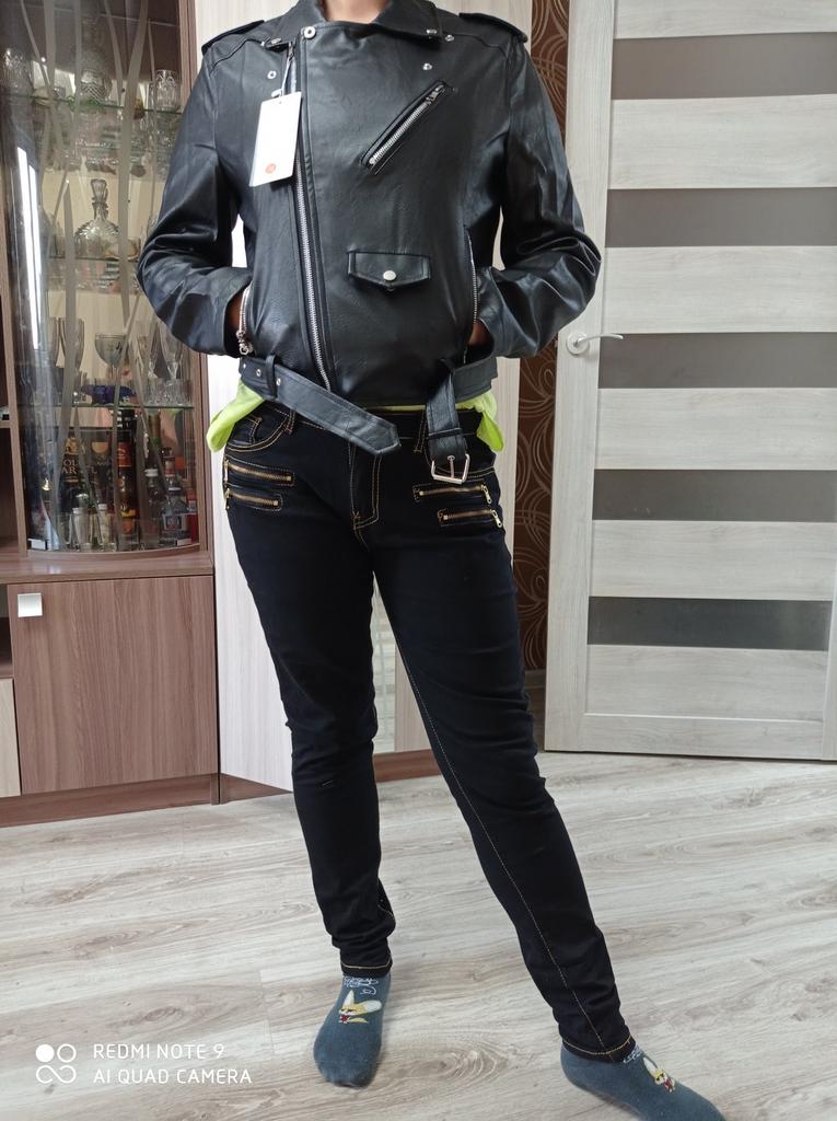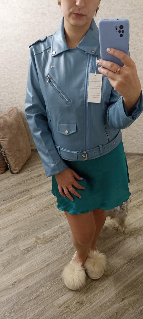 A beautiful leather jacket. For such a low price, simply a revelation. The size is XL, quite small in my opinion, because I wear S/M. Still, it looks beautiful and fits perfectly with everything. 😍 The shipment was about 3 weeks. It was packaged securely so nothing happened to it. I'm really satisfied. I can honestly recommend both the seller and this jacket. 💙