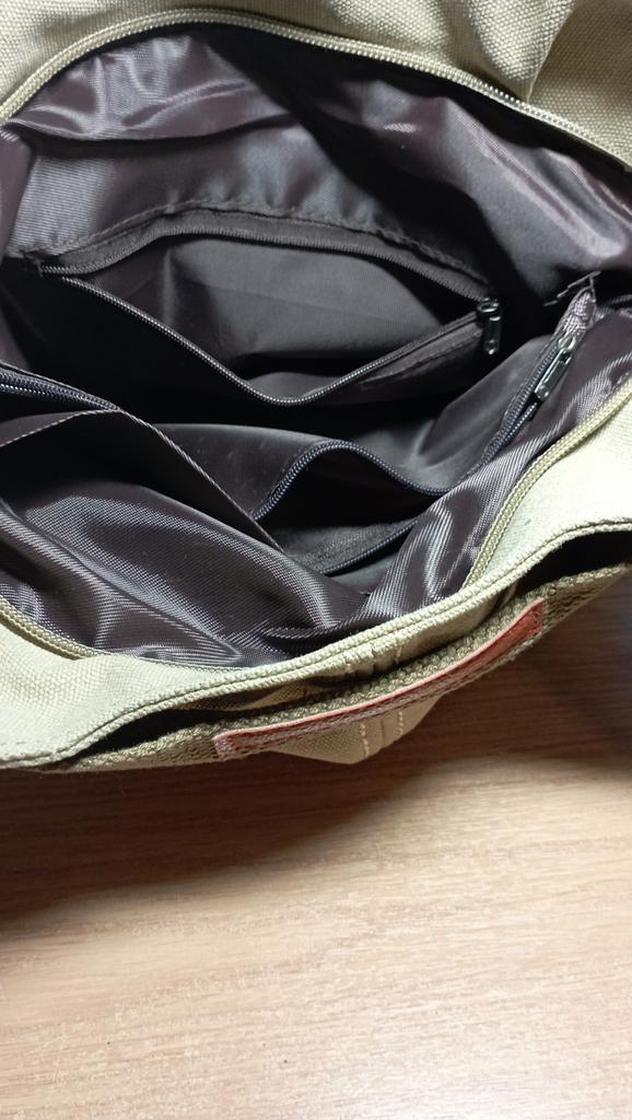 There is no large zippered compartment inside the bag.