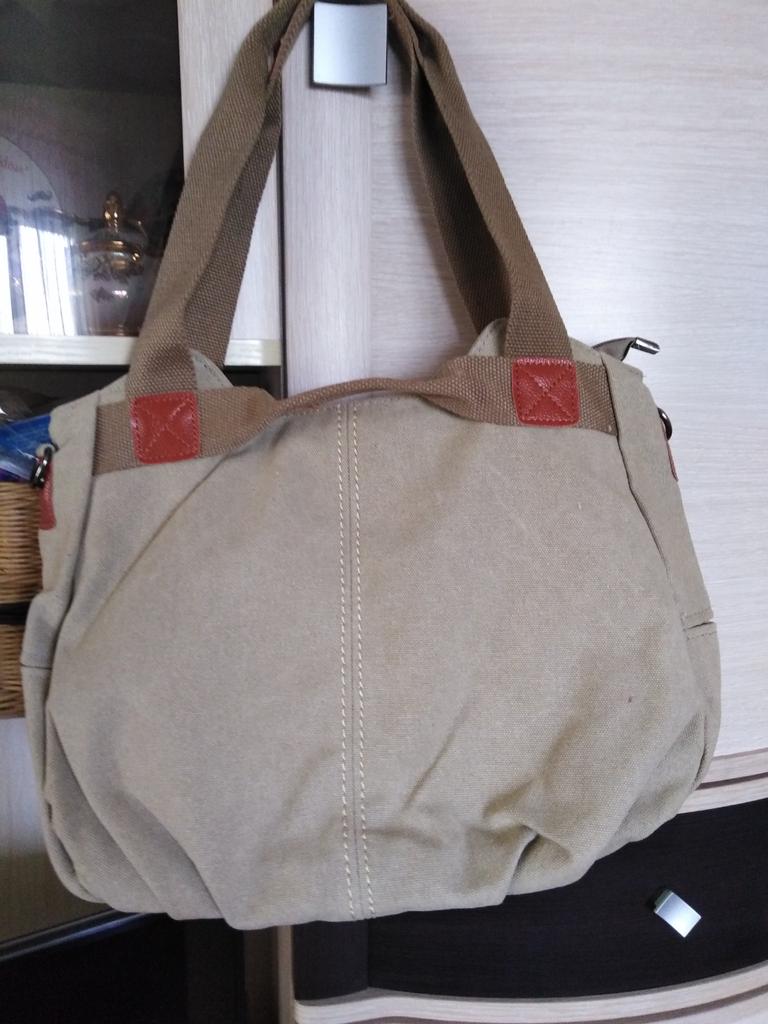 The bag is not as bright as in the photo, and the handles are quite short, which are the smallest. And so, a bag with many pockets and compartments, it’s convenient!