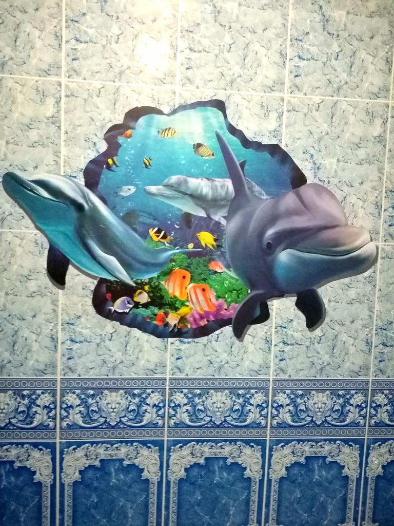 60 X 90Cm Underwater World Dolphin Fish Wall Sticker Children Bedroom Home Decoration