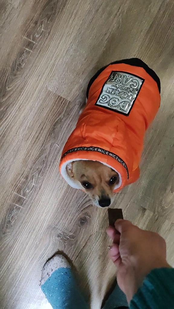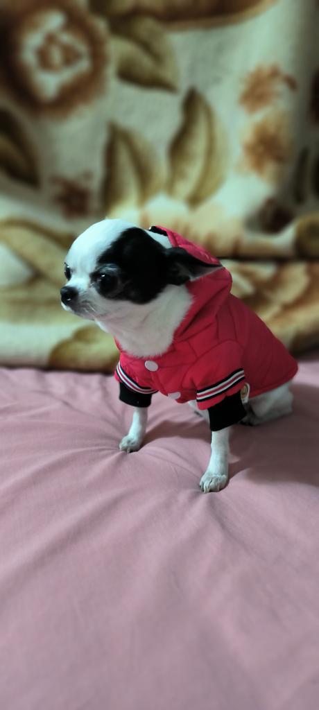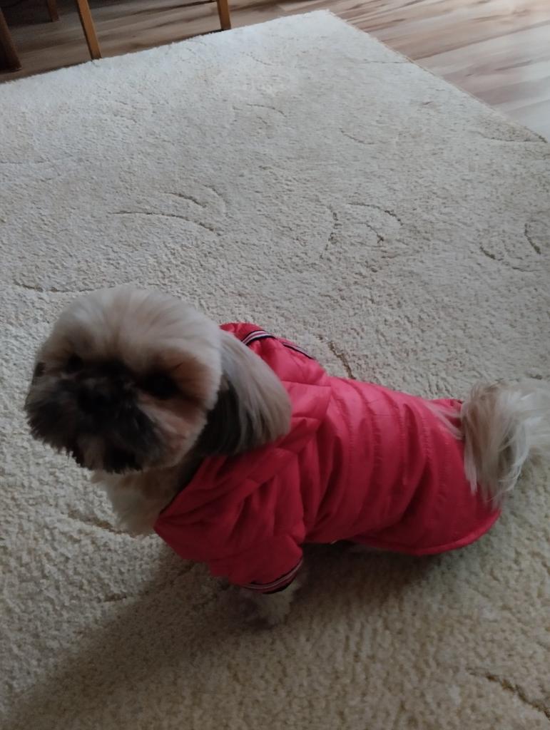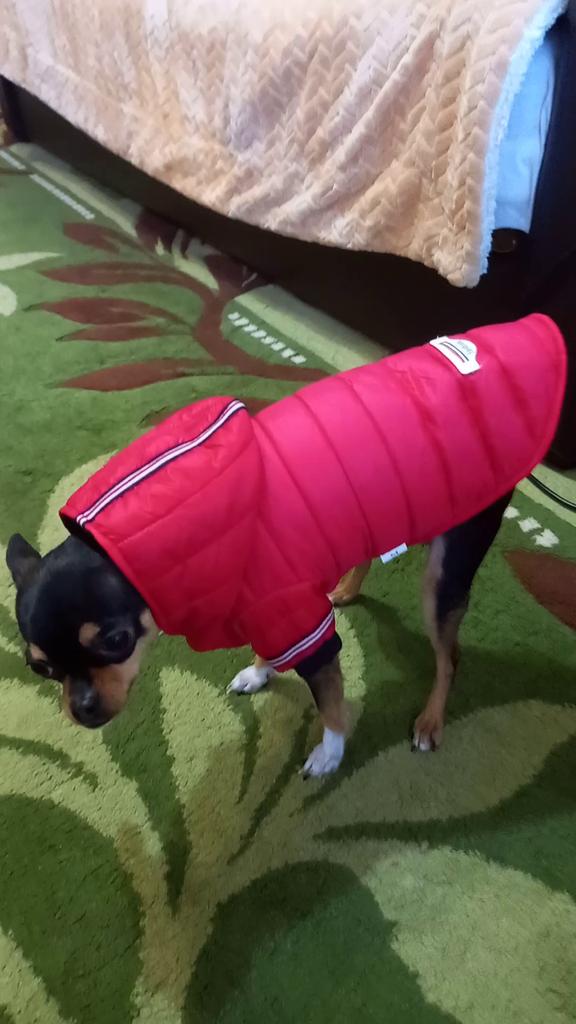 A very pretty jacket and, like the items I have previously ordered from Joom, it arrived very well packaged . Jacket fits my Bolonka Zwetna in size L and I can only recommend it to other dog lovers.