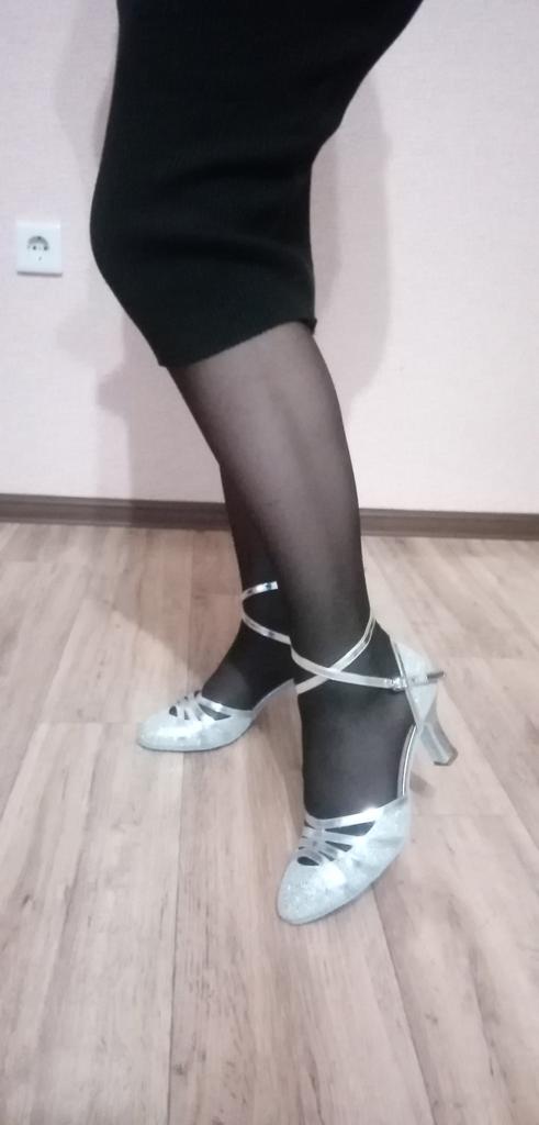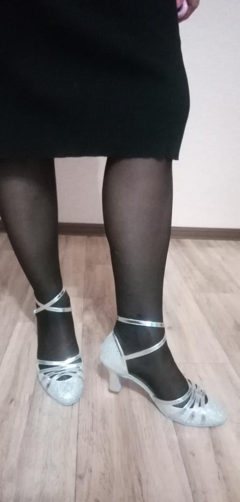 Size is just right. Not bigger, not smaller. Very beautiful shoes. I am delighted. Tomorrow I will go in them to conquer the dance floor
