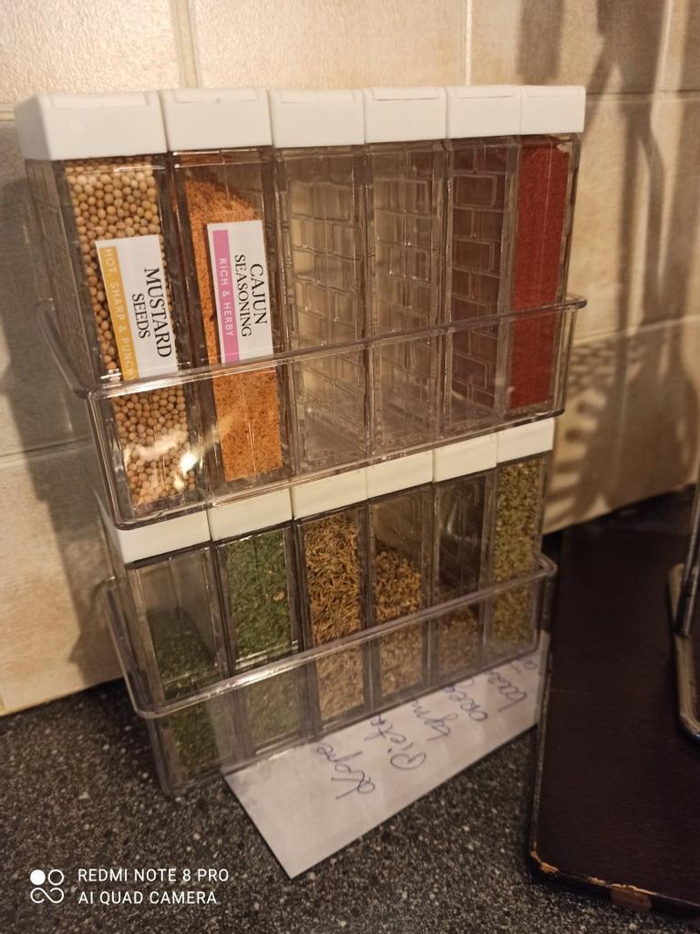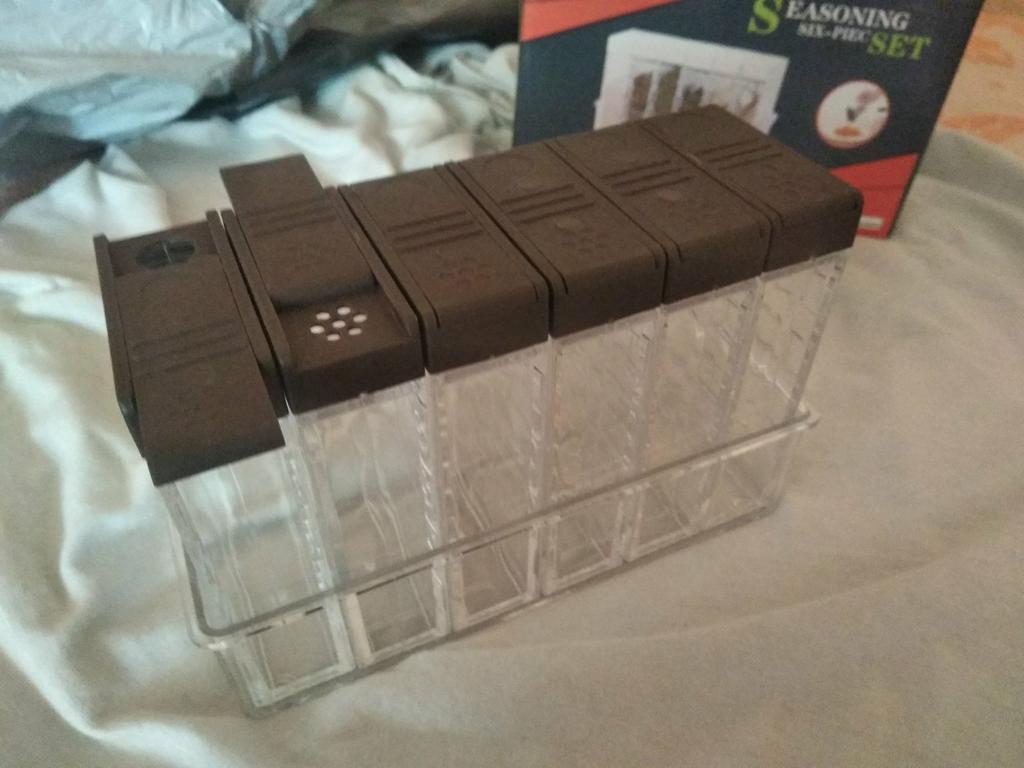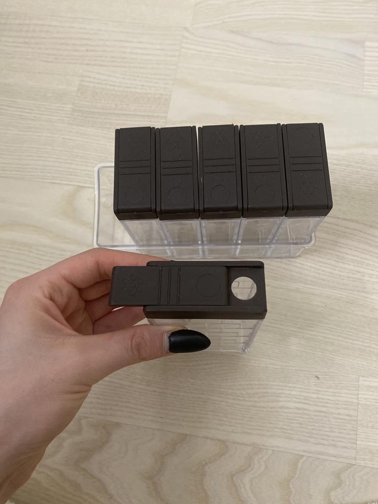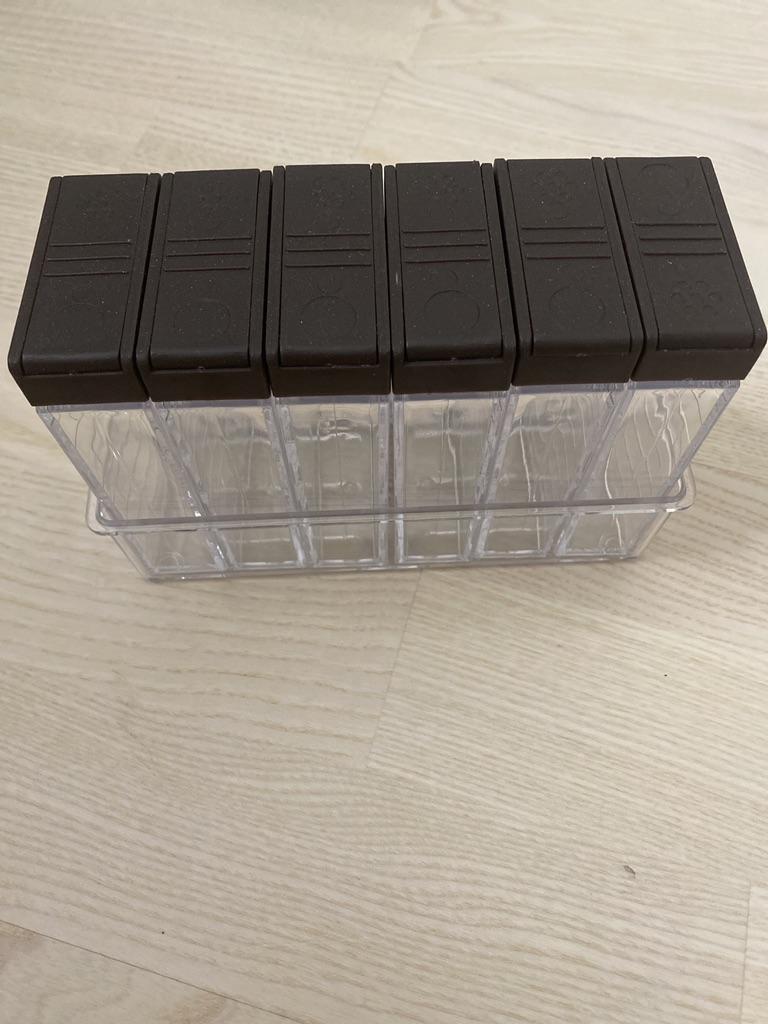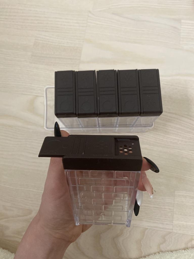 I received these boxes today and they are a kitchen tool for spices. I was supposed to get 6 boxes, but unfortunately, there was a shortage of boxes, and I only received 5. product specification: ✨ Durable plastic looks great ✨ Two slots to spray the required quantity ✨ has a black plastic cover ✨ the size is suitable for spices ✨ Contains a transparent box to collect boxes