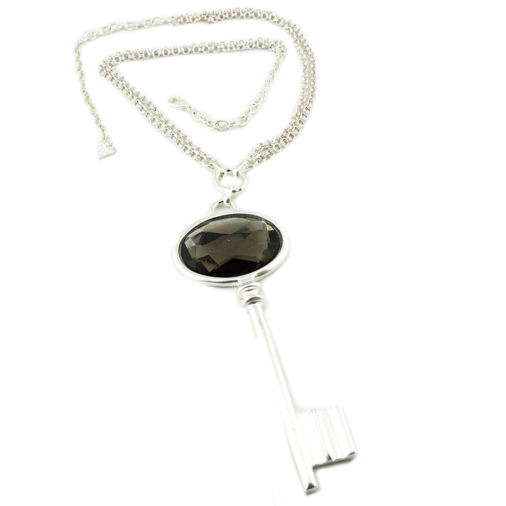 Dolce Vita [P9653] - Designer Long Necklace 'Clé Des Possibles' Silver Taupe - 11. 5x4. 5cm