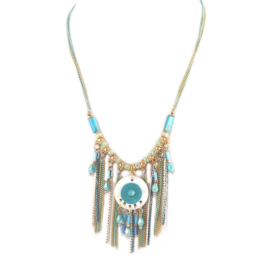 Les Trésors De Lily [Q0946] - Designer Necklace 'Acapulco' Green Blue Gold - 60 Mm