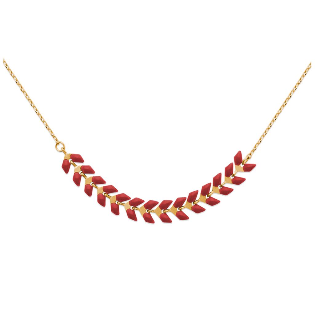 Les Trésors De Lily [Q4154] - Golden Red 'Boho' Gold Plated Necklace - 42 Cm 65x6 Mm (ear of Wheat)