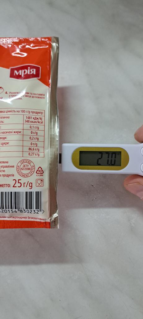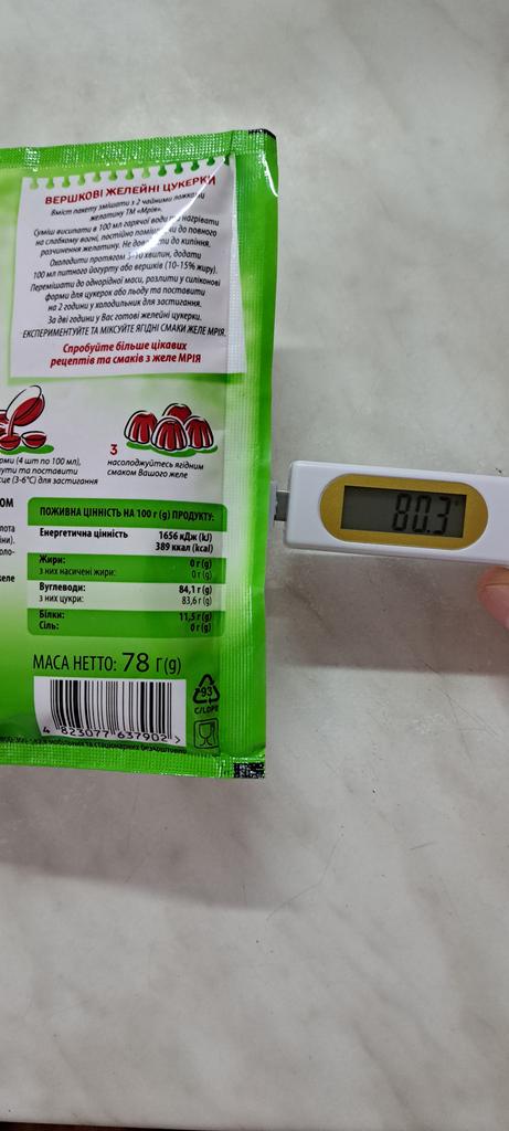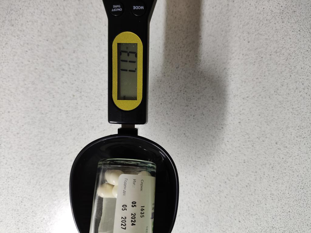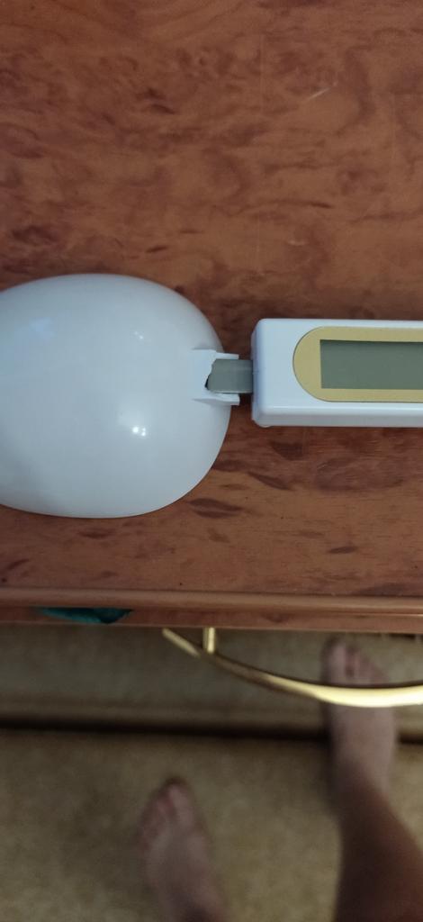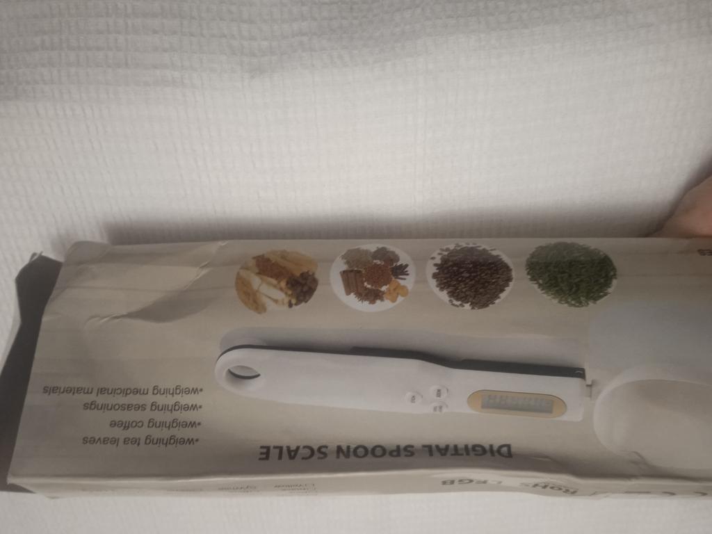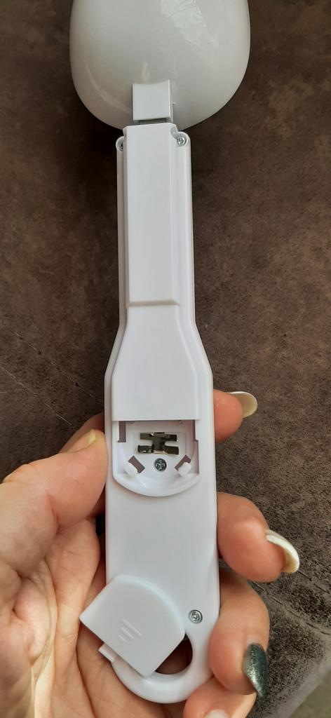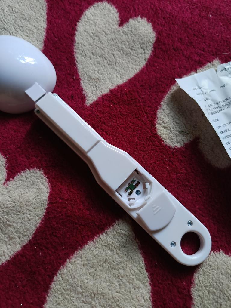 The spoon is good, holds 500 grams, works. It's unpleasant that the packaging was torn open and the battery was removed. Something else should have been included, visible from the plastic insert. Oh well. A round 32 size battery is needed.