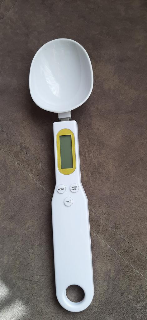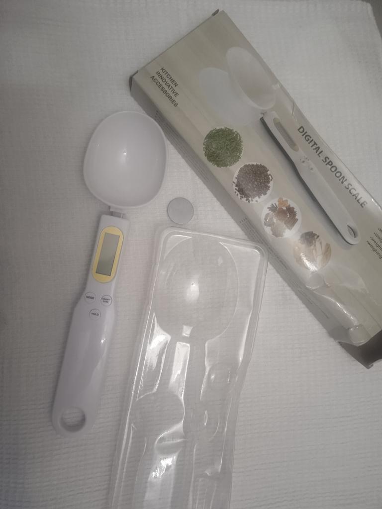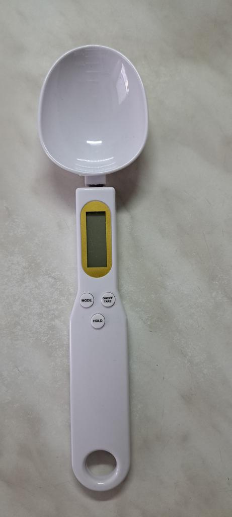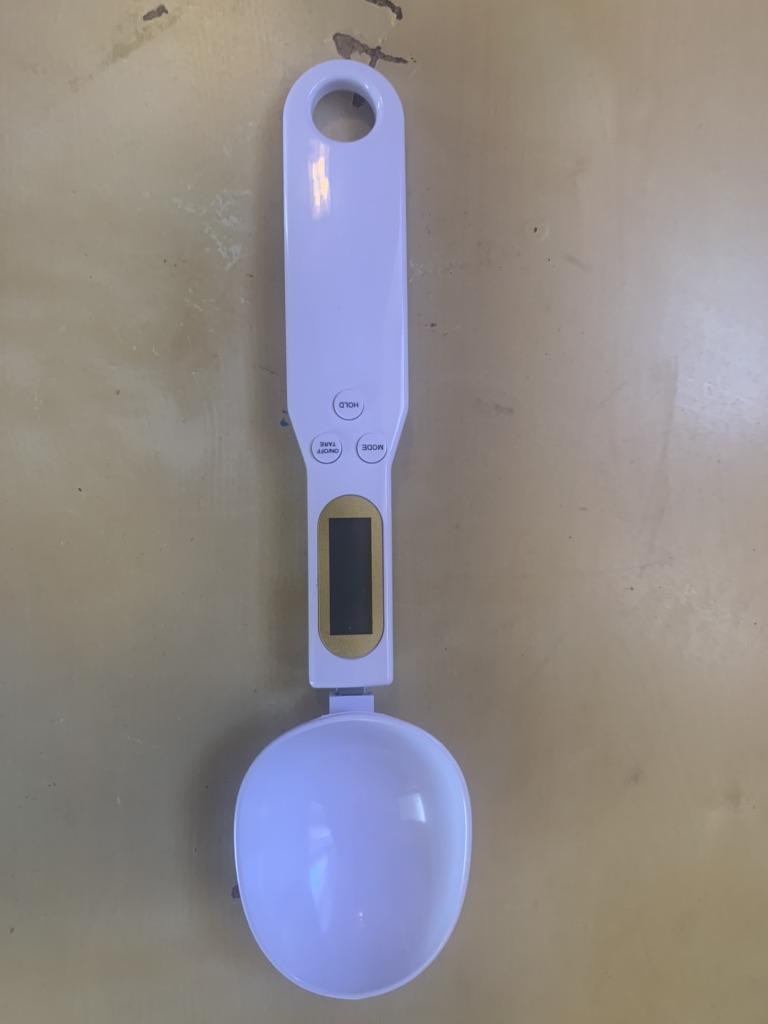 The spoon is good, just insert the batteries. To measure loose products for baking.