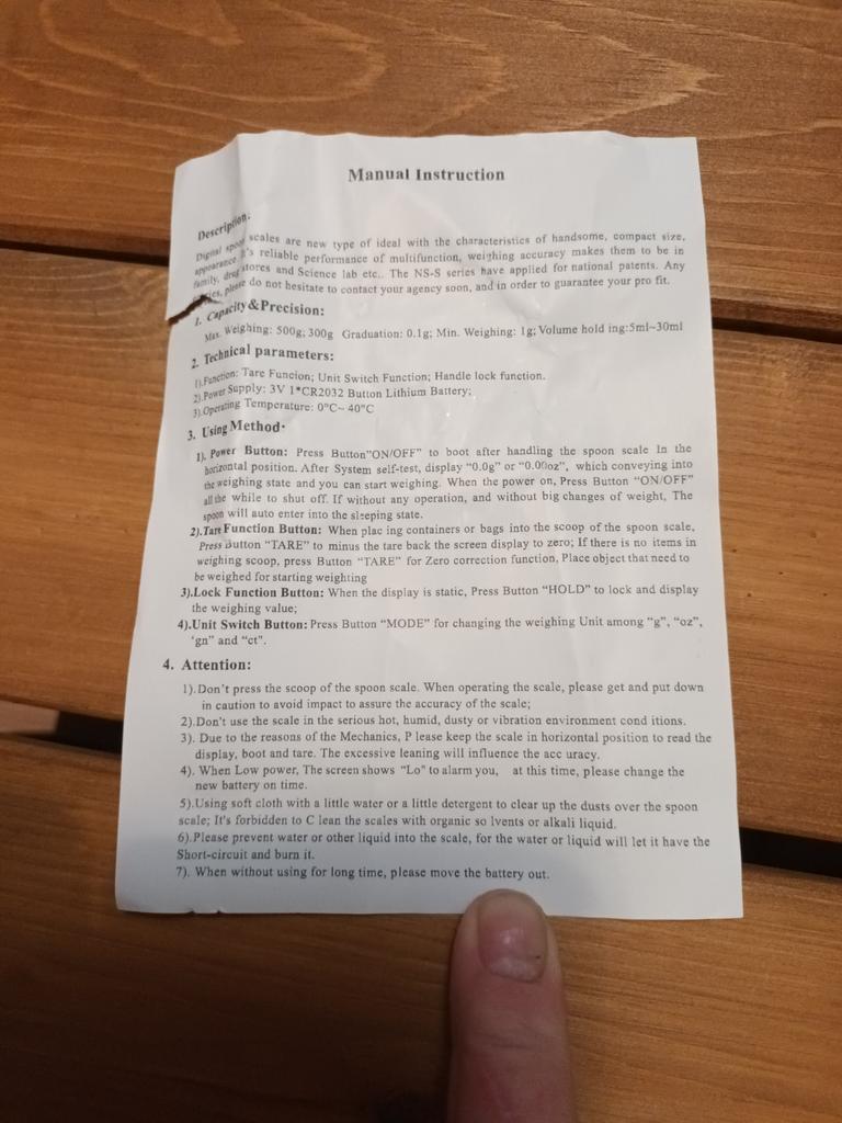 Spoon without a battery and a clear instruction manual. I bought the battery, but I can't use the spoon - the numbers on the scale are running around as they please