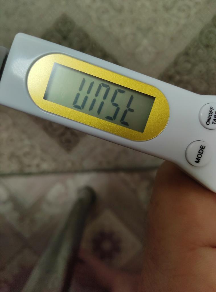 Quite a large spoon. Inserted the battery, it works. I will check the accuracy of the device later.