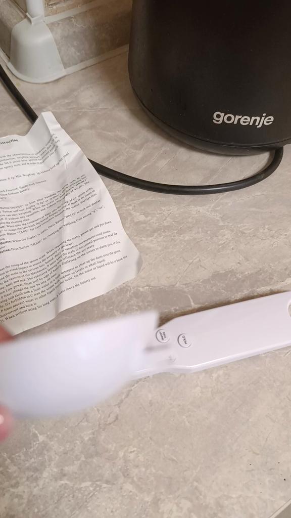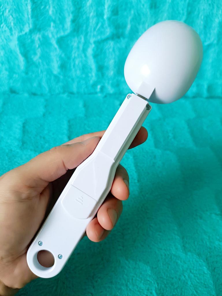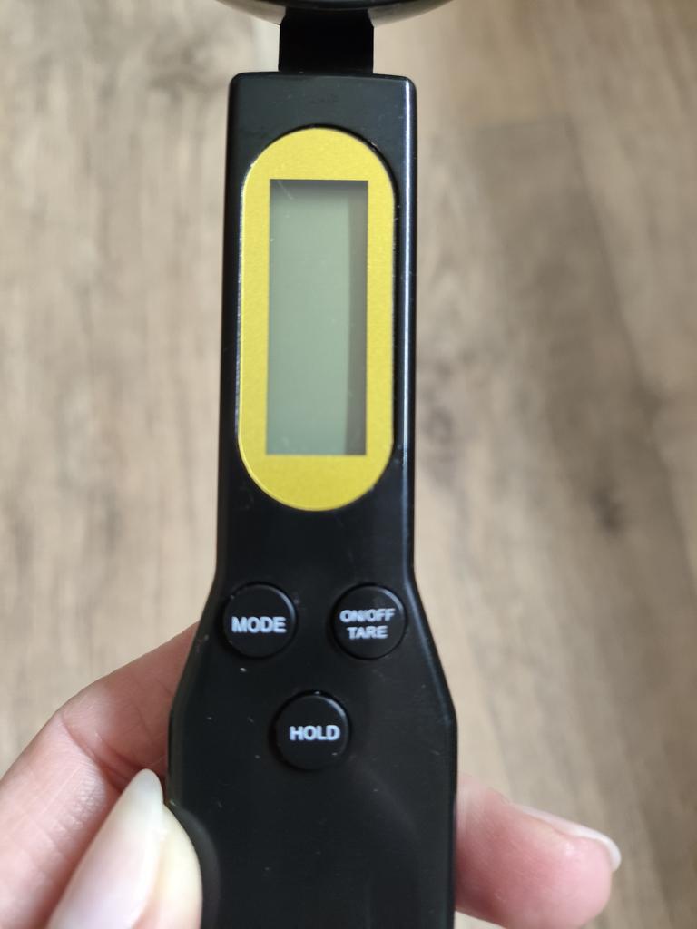 The spoon weighs grams clearly. The buttons are understandable. It turns off by itself. Convenient to use.