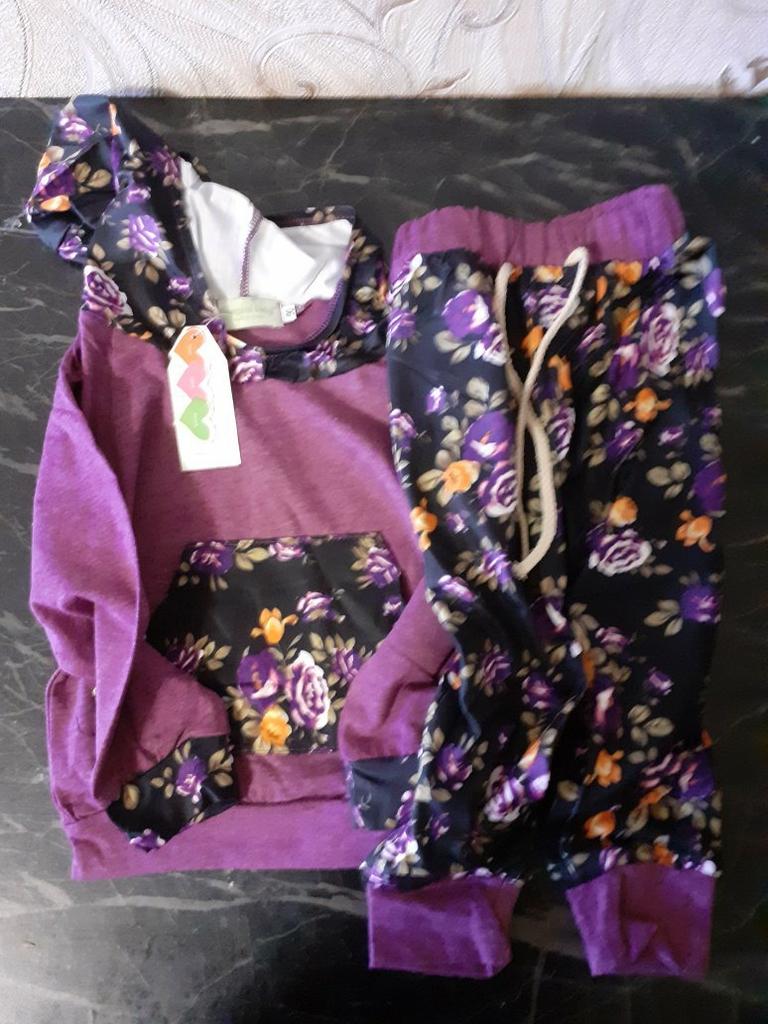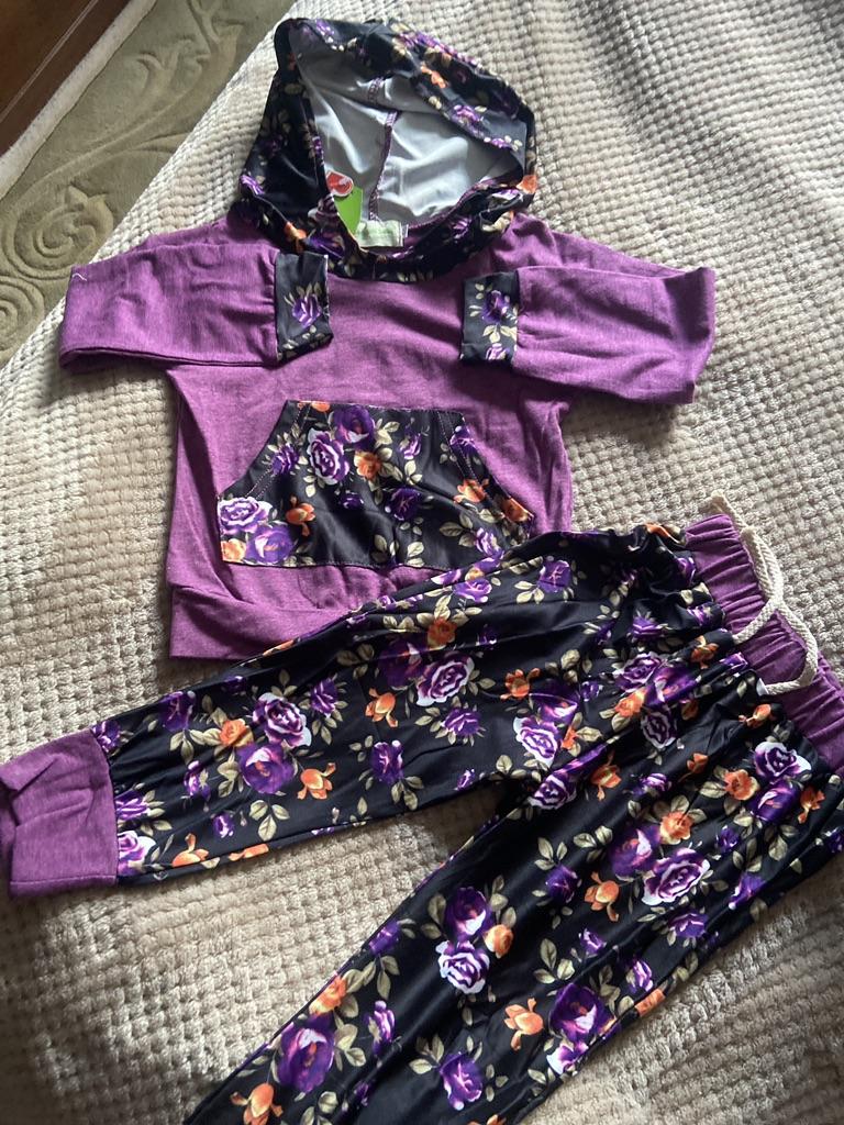 Autumn Winter Floral Baby Girls Warm Infant Clothes Set Purple Hooded Tops+Pants 2PCS Outfits Set