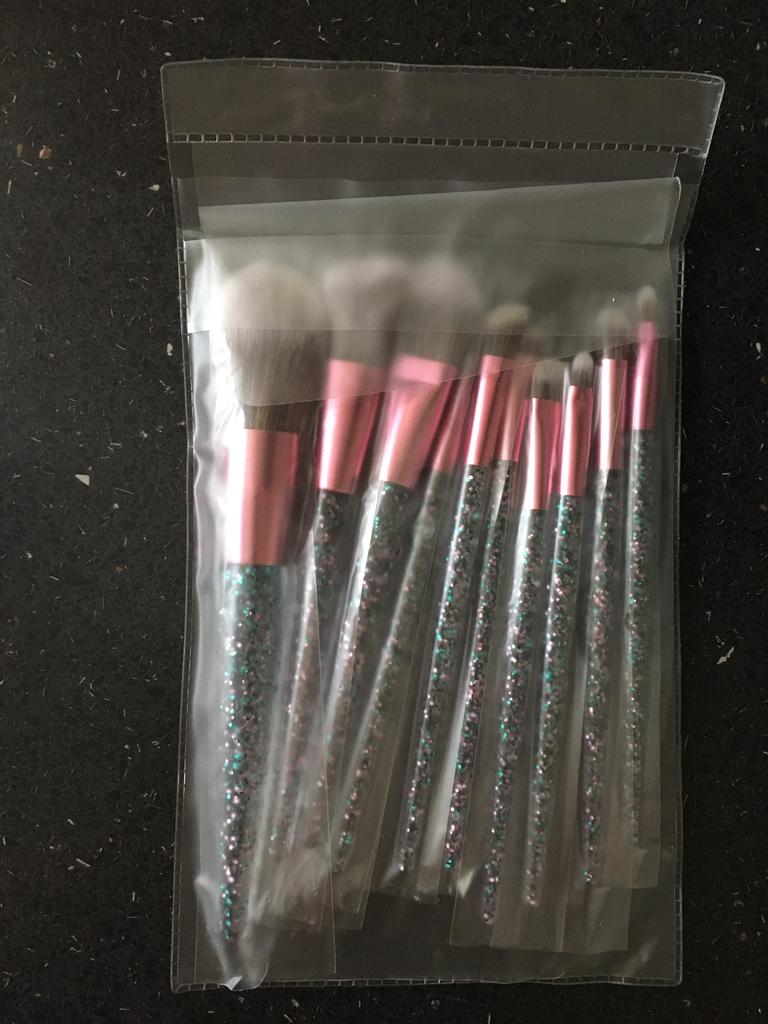 10Pcs Rhinestone Crystal Glitter Makeup Brushes Set Professional Foundation Brushes