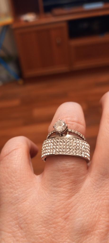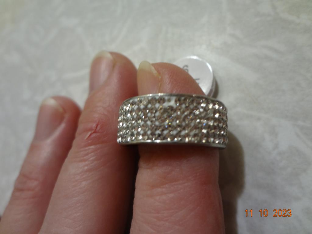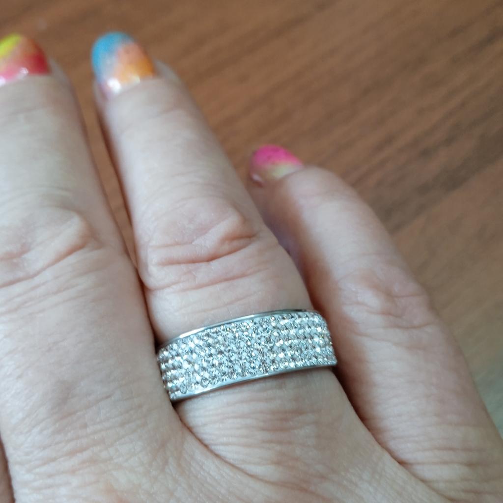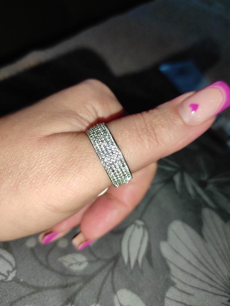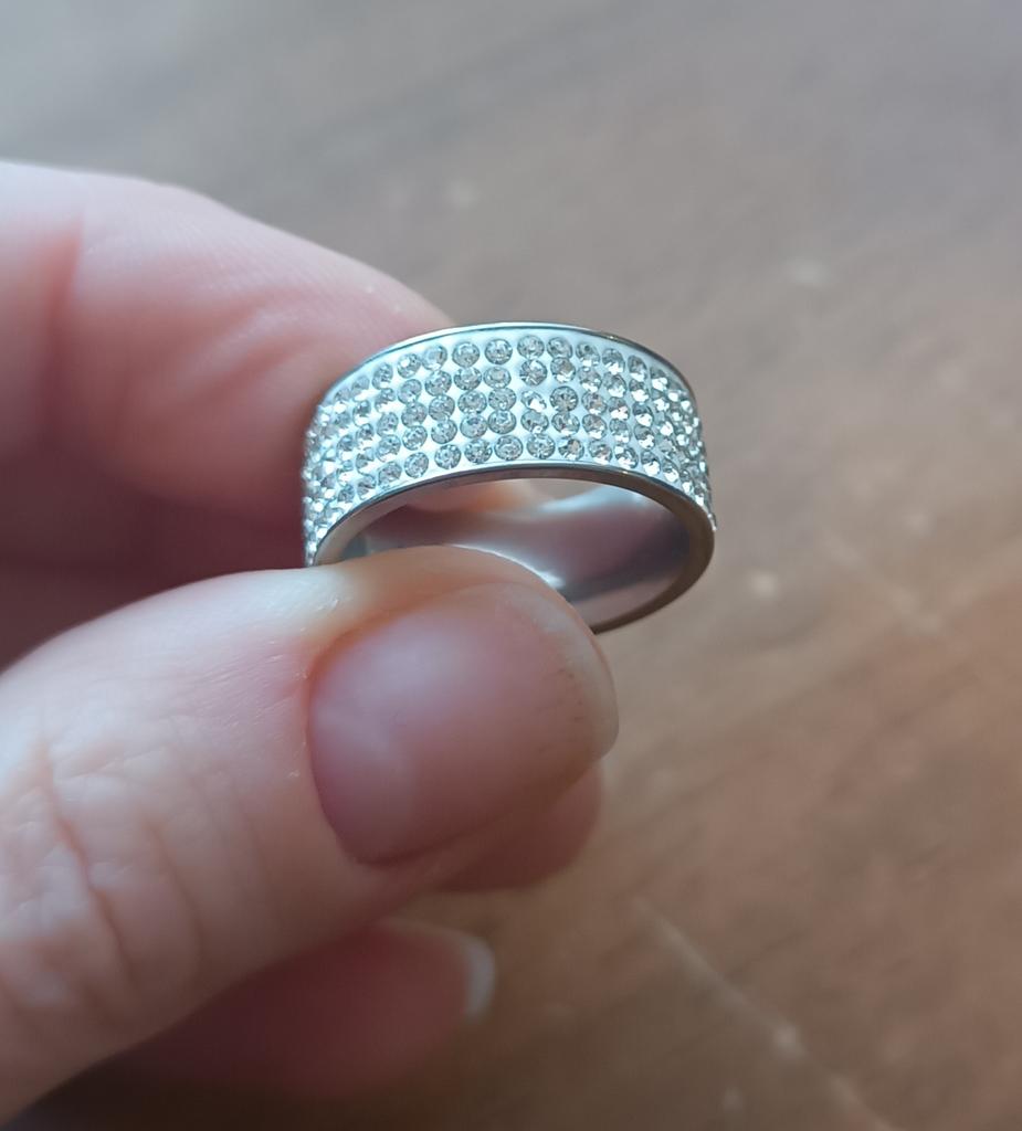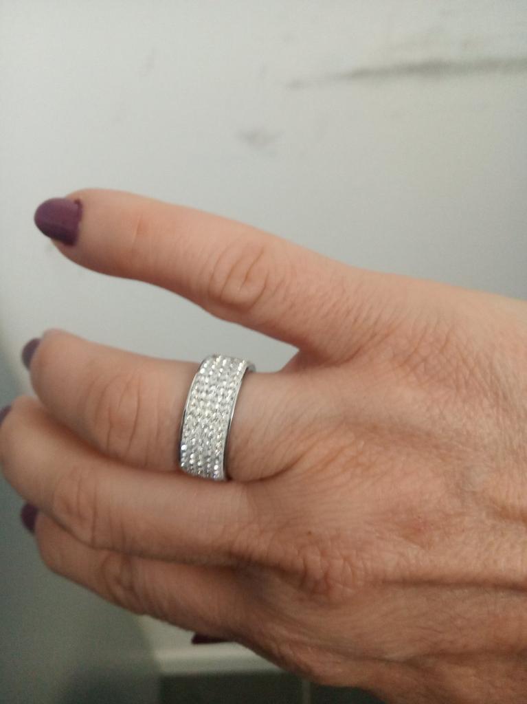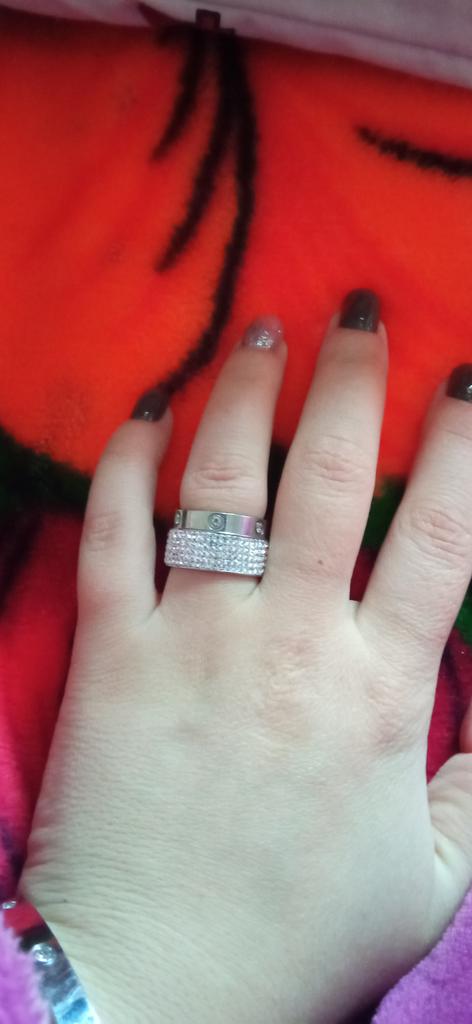 Very pretty rhinestone ring, I ordered 2 copies, the first ring that I received 2 months ago is starting to lose several rhinestones, while the second that I received 15 days ago is not didn't move.