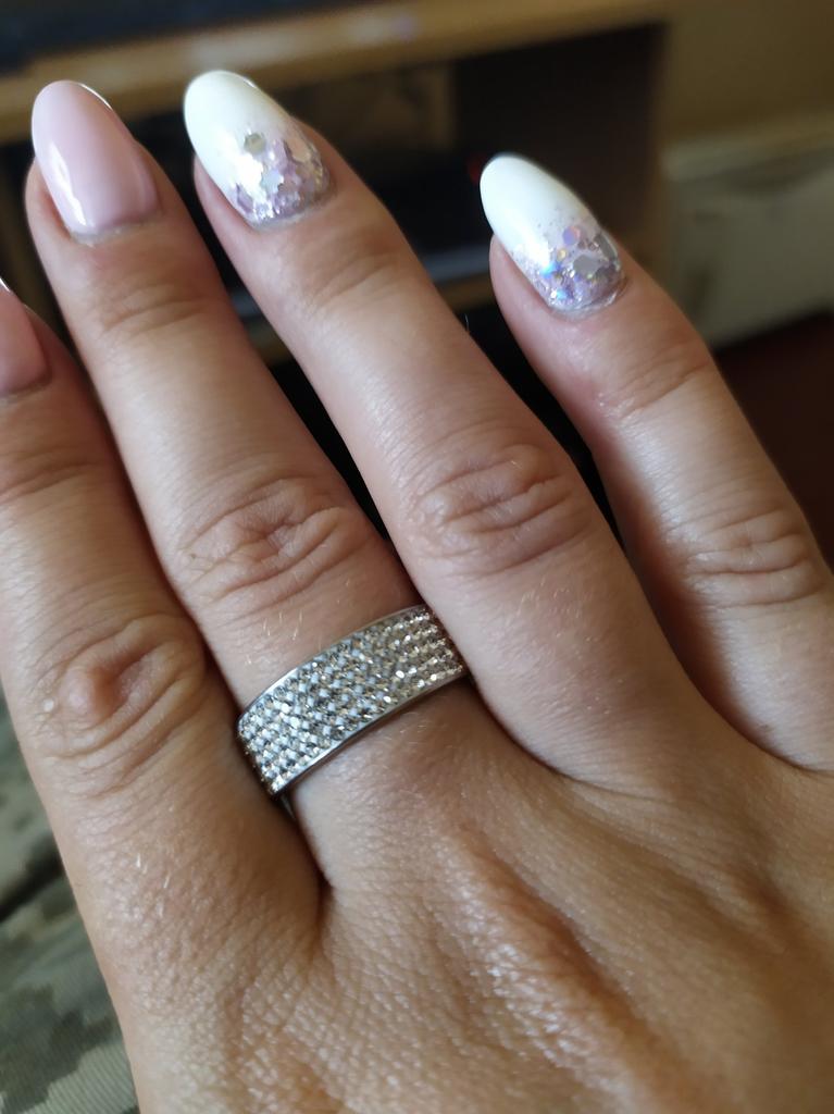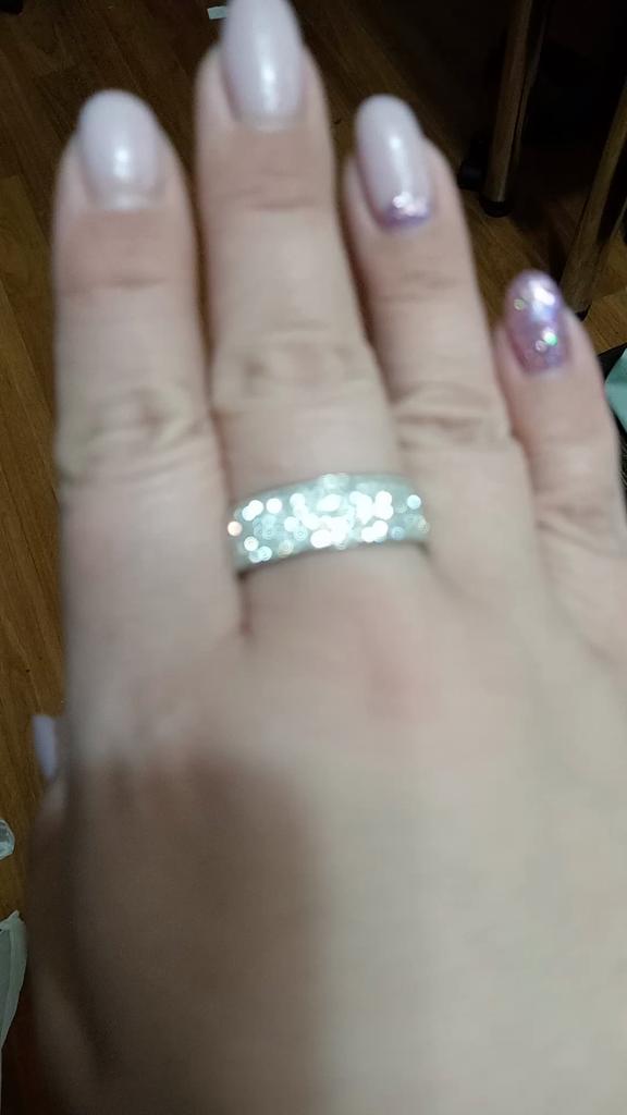 The ring is chic, it shines beautifully, the pebbles are in place, even the photo does not convey all the brilliance
