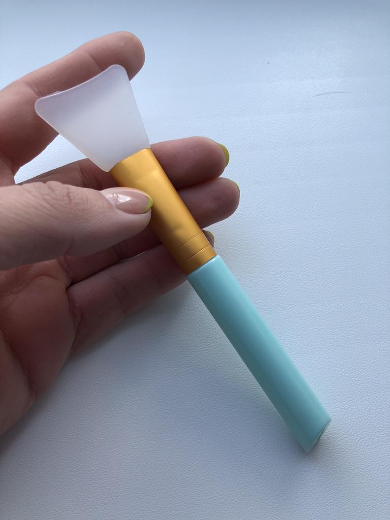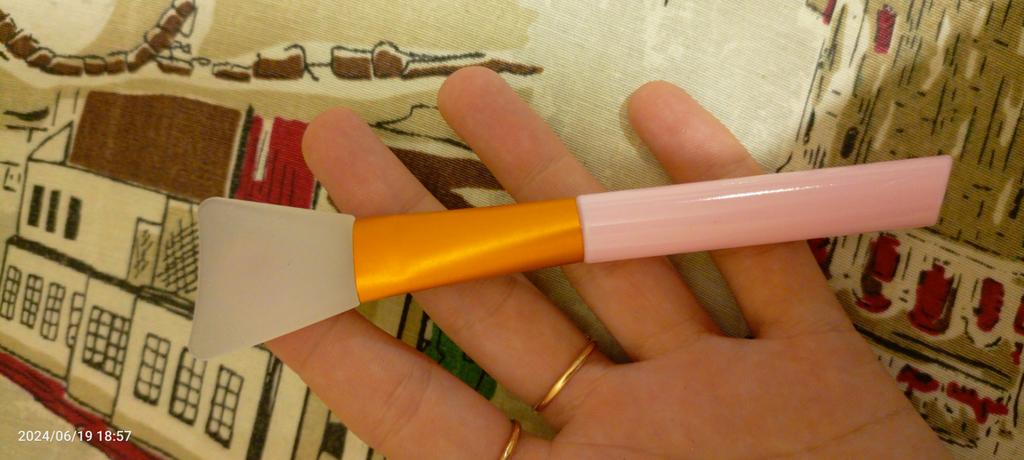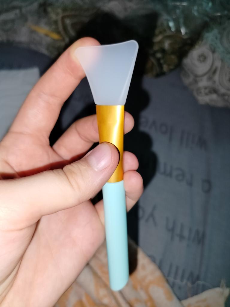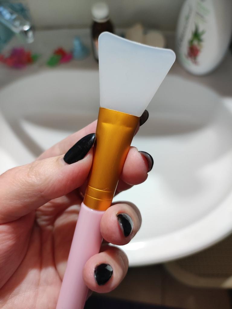 Rubber spatula for applying masks to the skin of the face. And quite elastic and at the same time soft, I recommend!