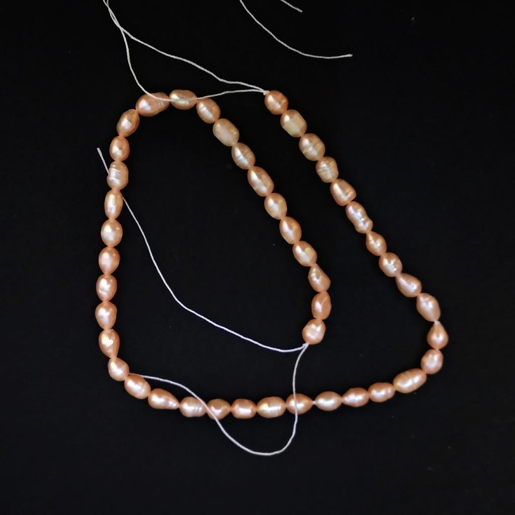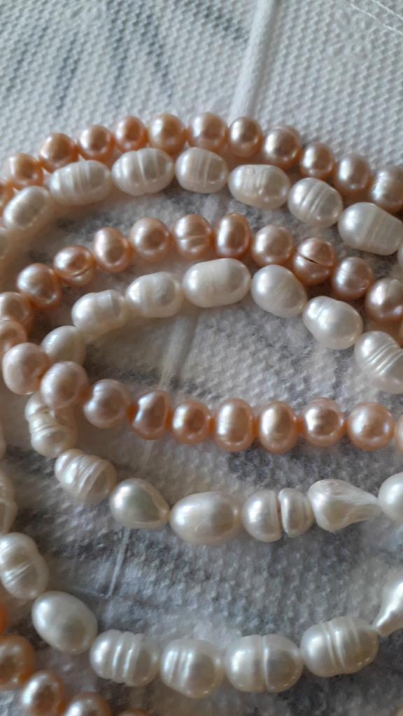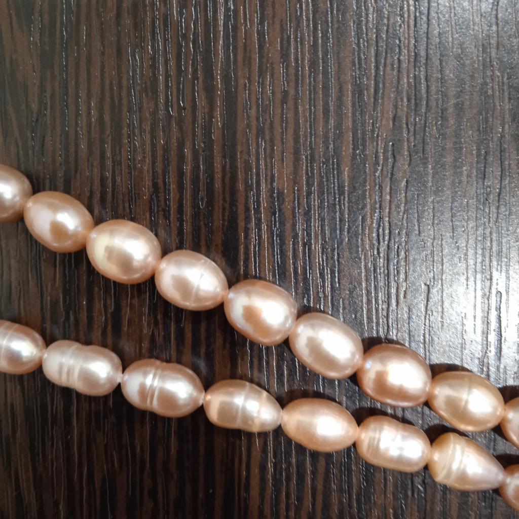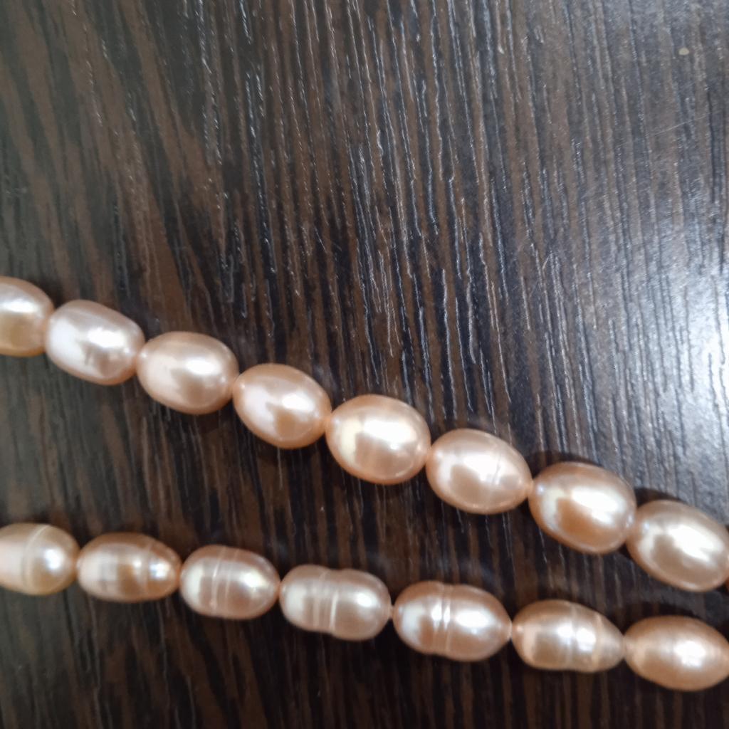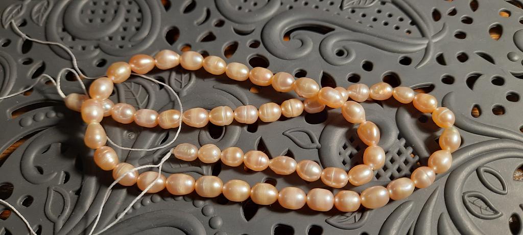 2x Rose' elongated freshwater pearls 5x6mm. Well, the size can't be right at all, because they are the same size as the 6x 7mm beads. Then they have no shape at all, the color also leaves a lot to be desired. Not at all like the promotional photos!!!๐ฅน๐๐๐คฌ๐ฆ See photos.