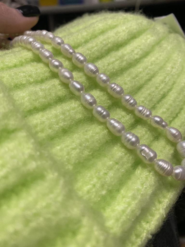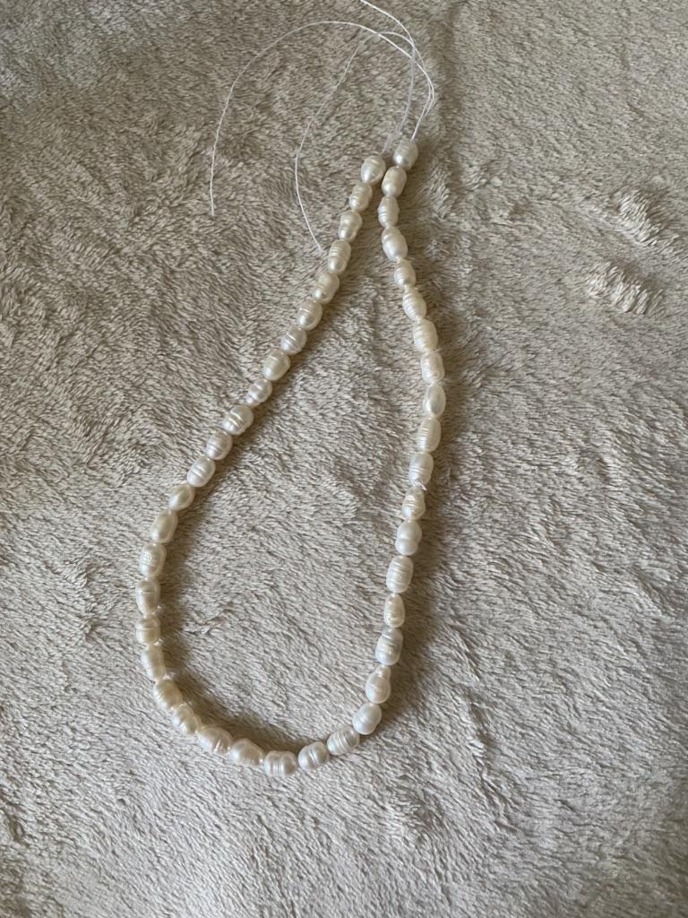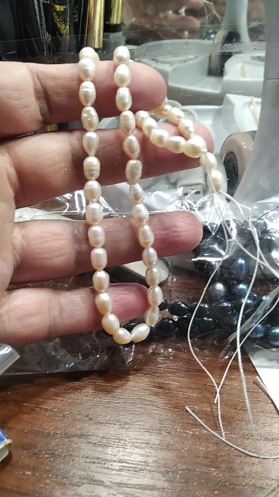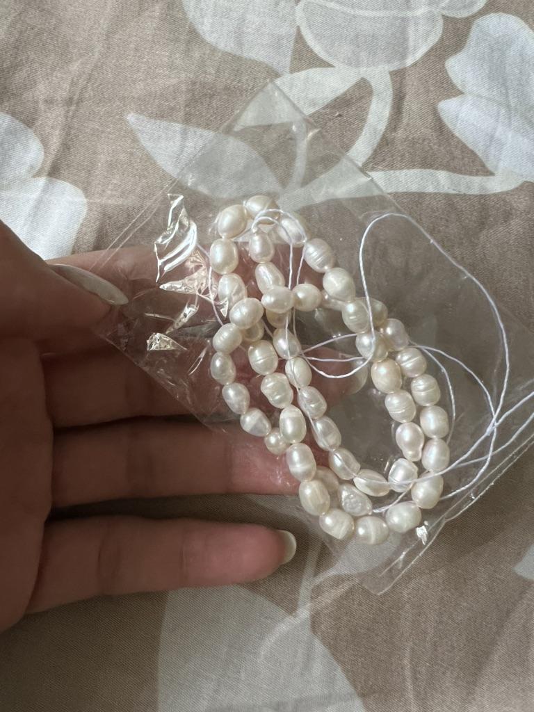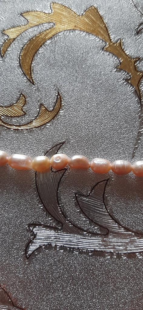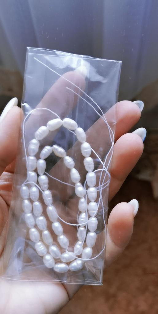 2x Rose' elongated freshwater pearls 5x6mm. Well, the size can't be right at all, because they are the same size as the 6x 7mm beads. Then they have no shape at all, the color also leaves a lot to be desired. Not at all like the promotional photos!!!๐ฅน๐๐๐คฌ๐ฆ See photos.