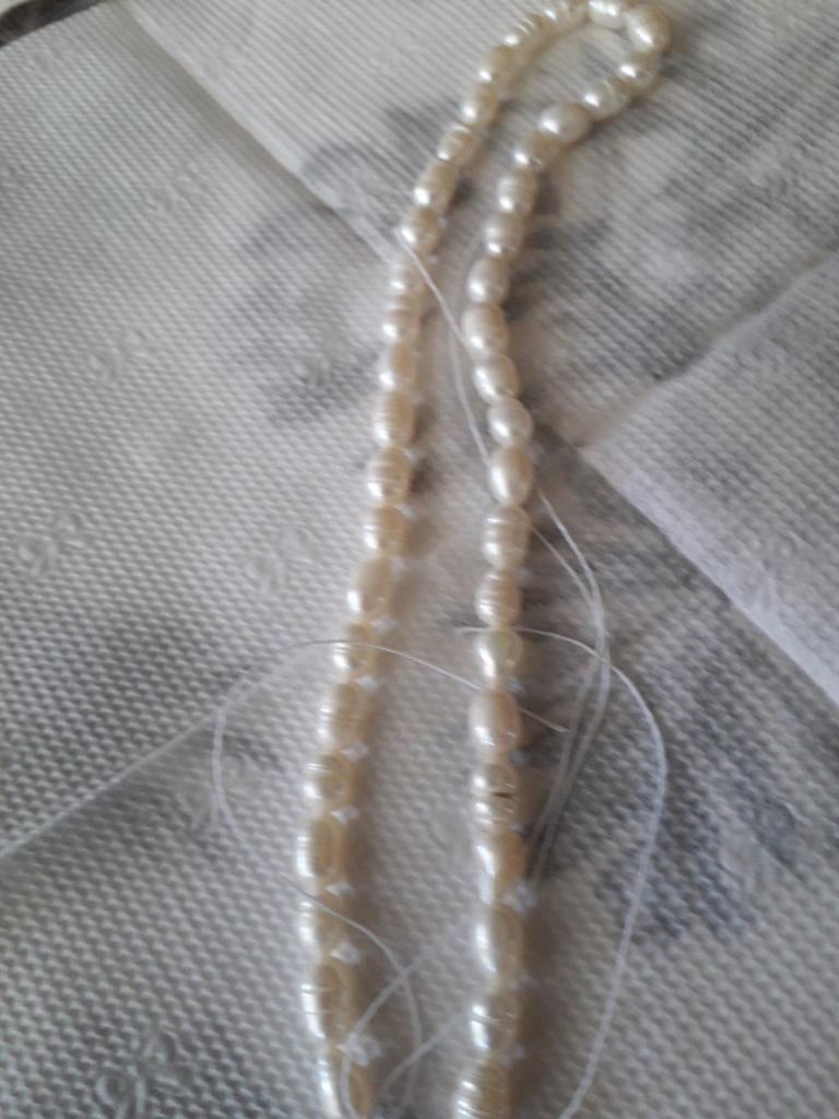 Elongated pearls, mostly with "rings". Low 34 cm.