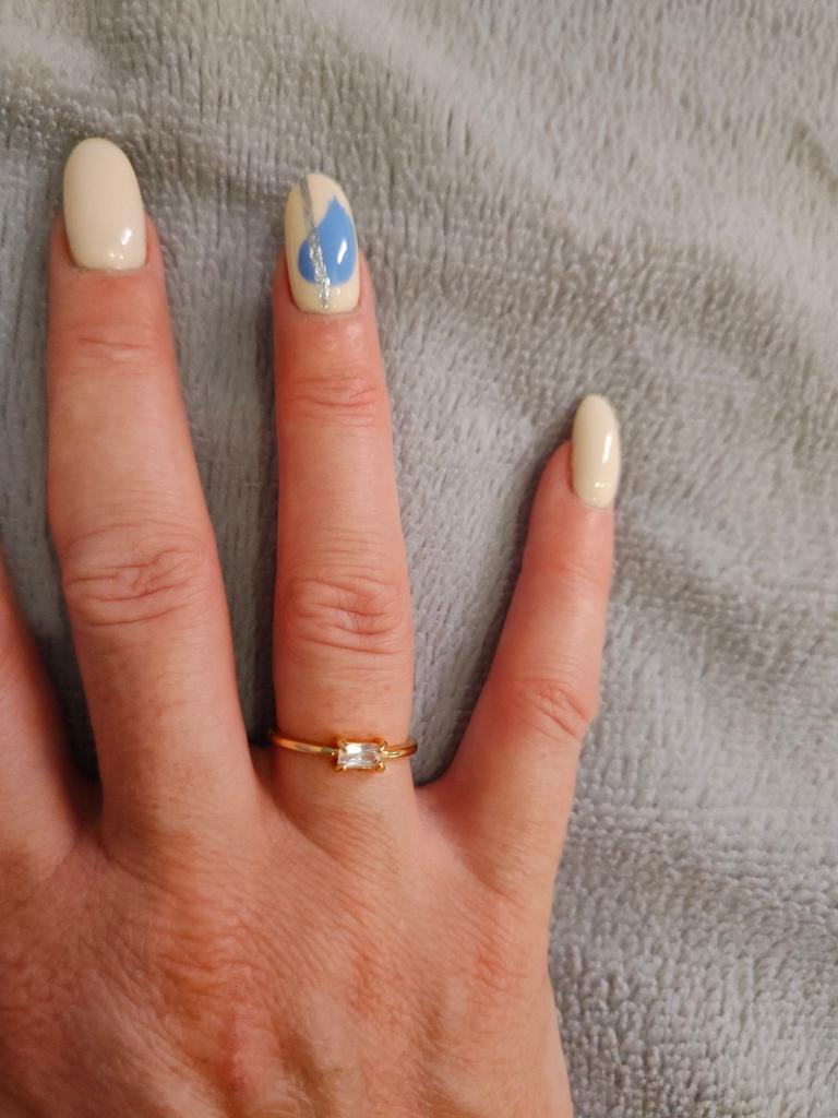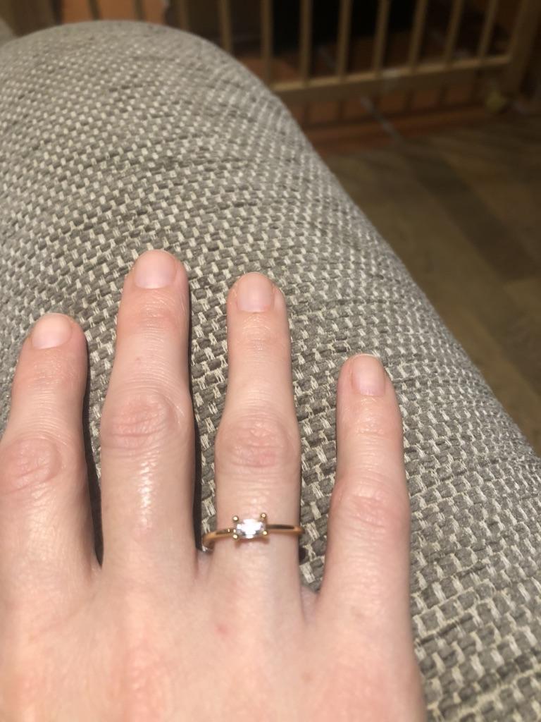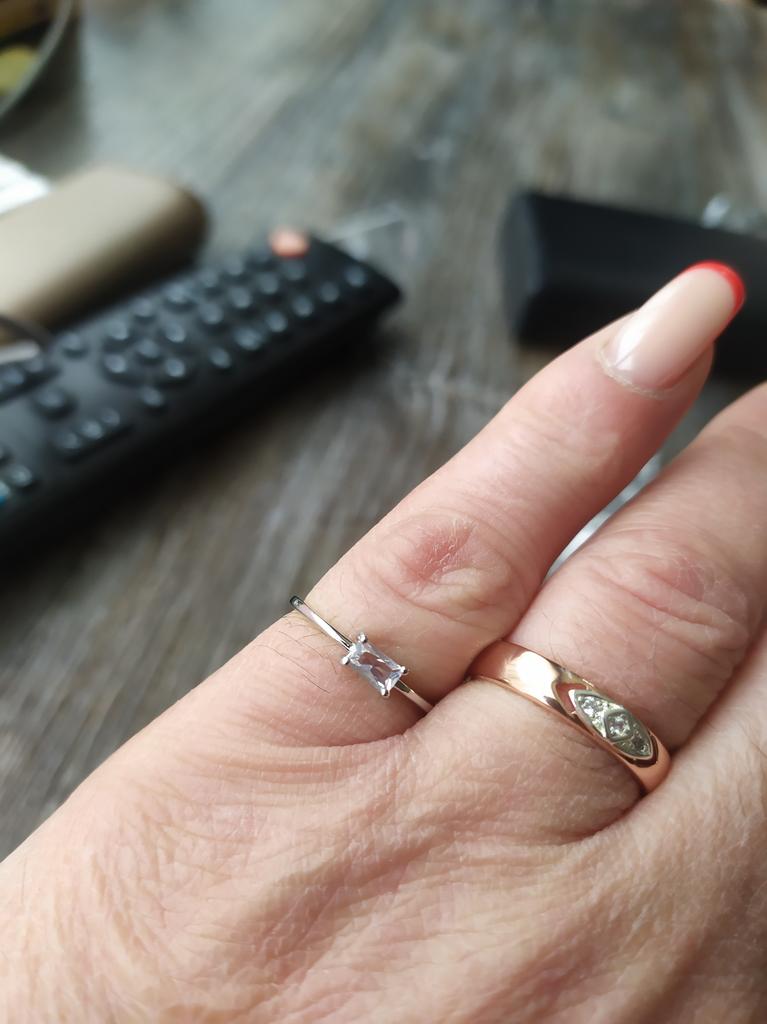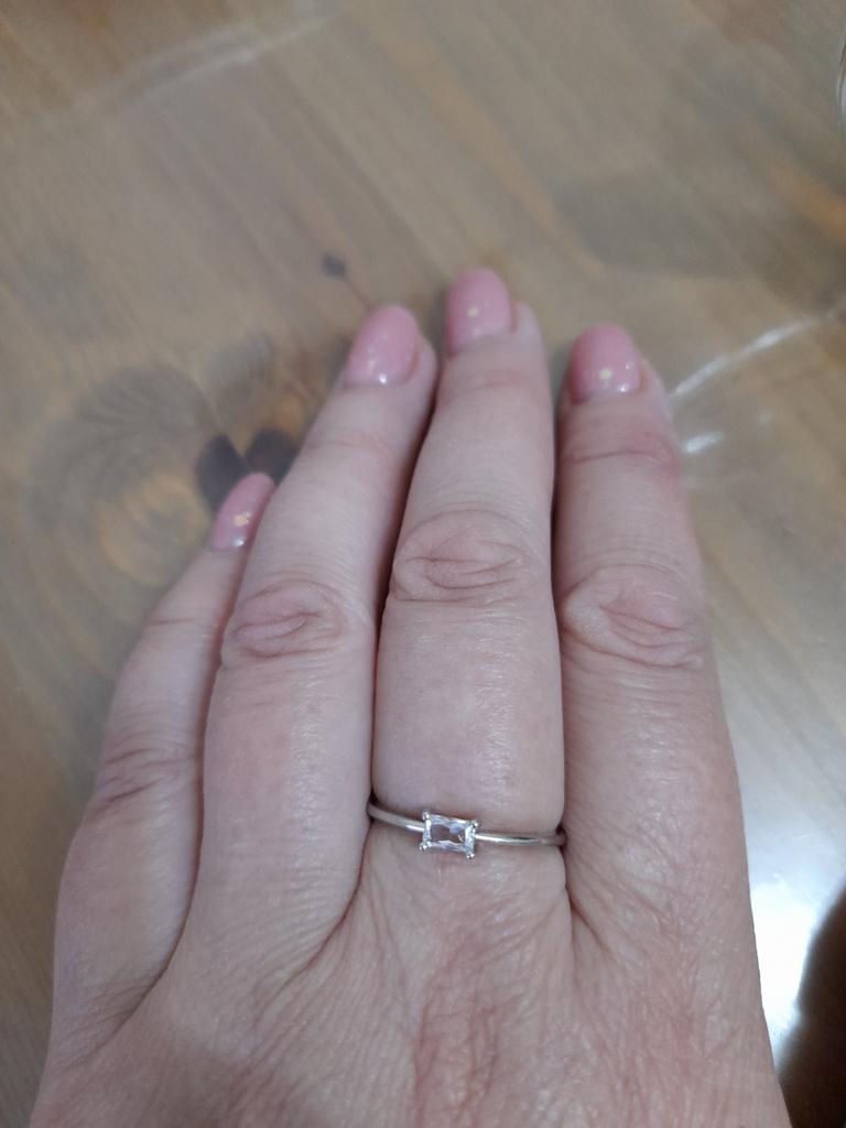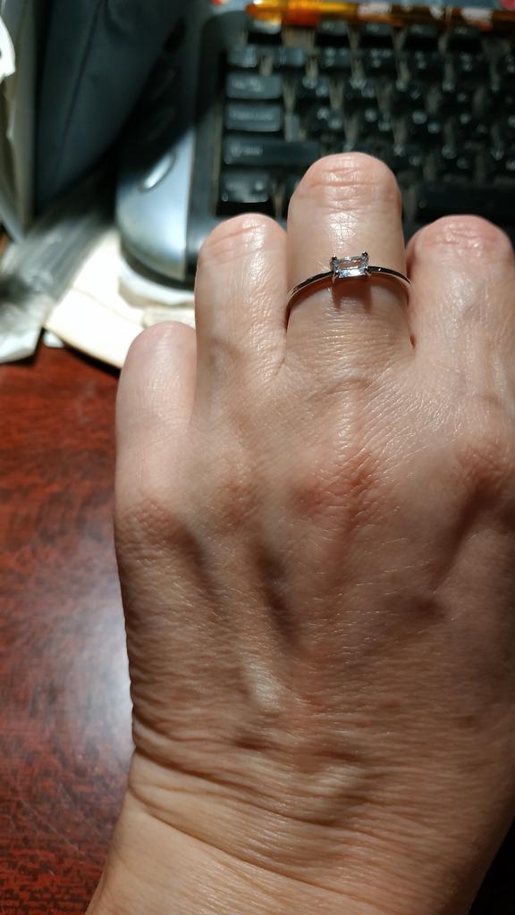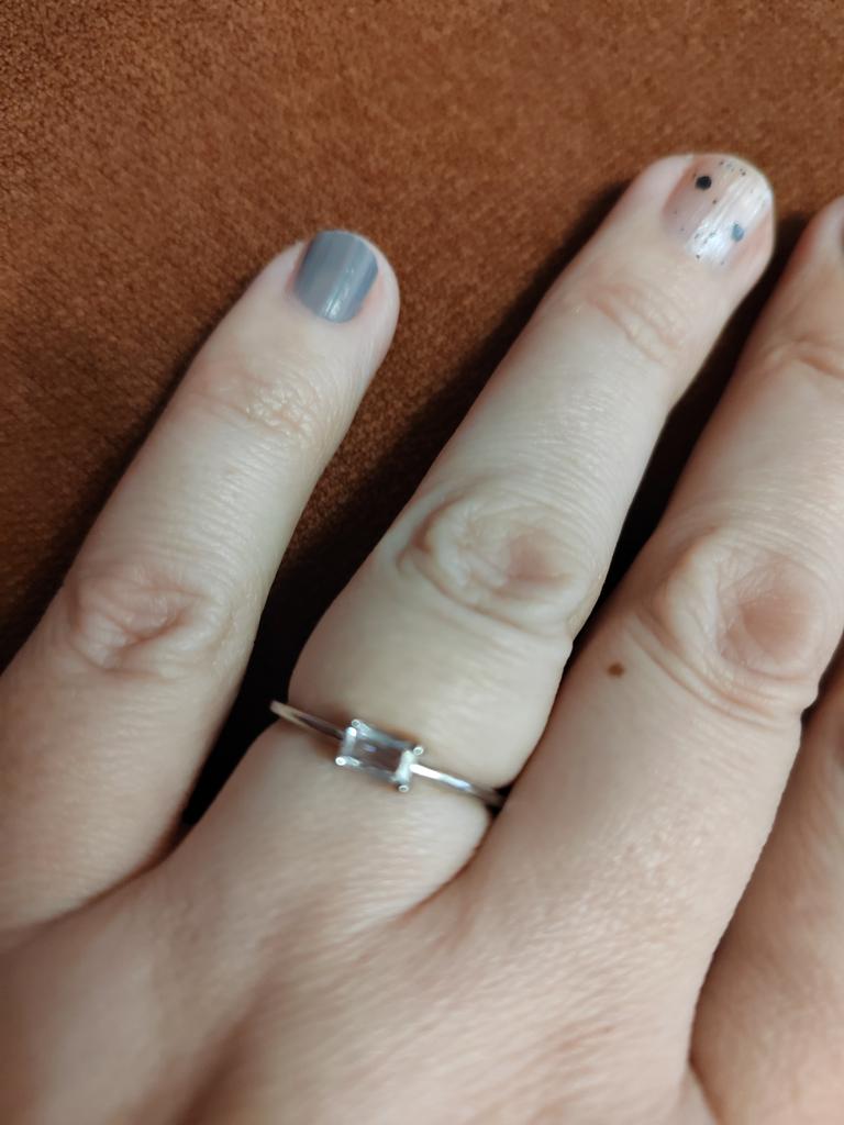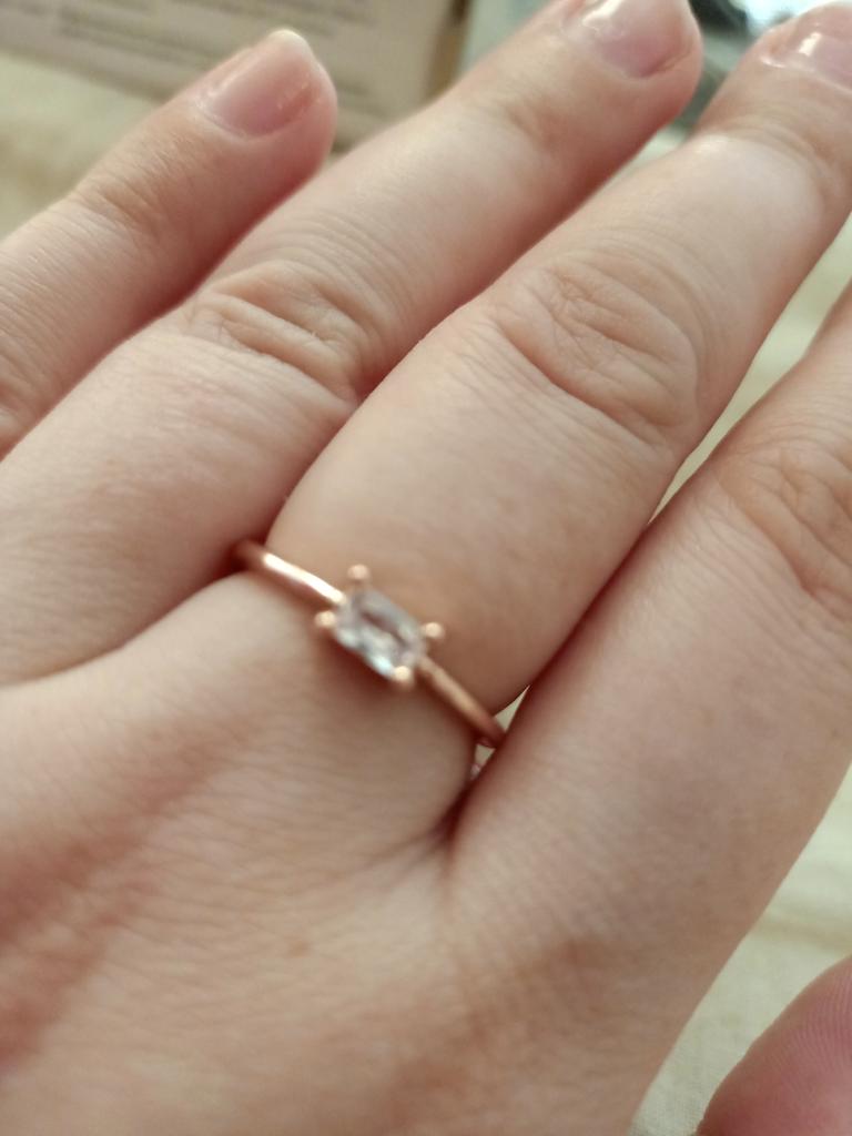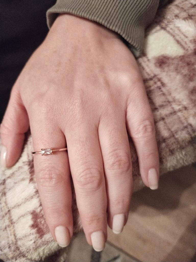 The ring is thin, elegant, the stone sparkles like infusion. I wear it without taking it off