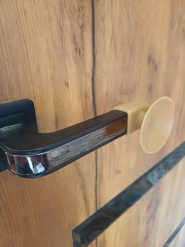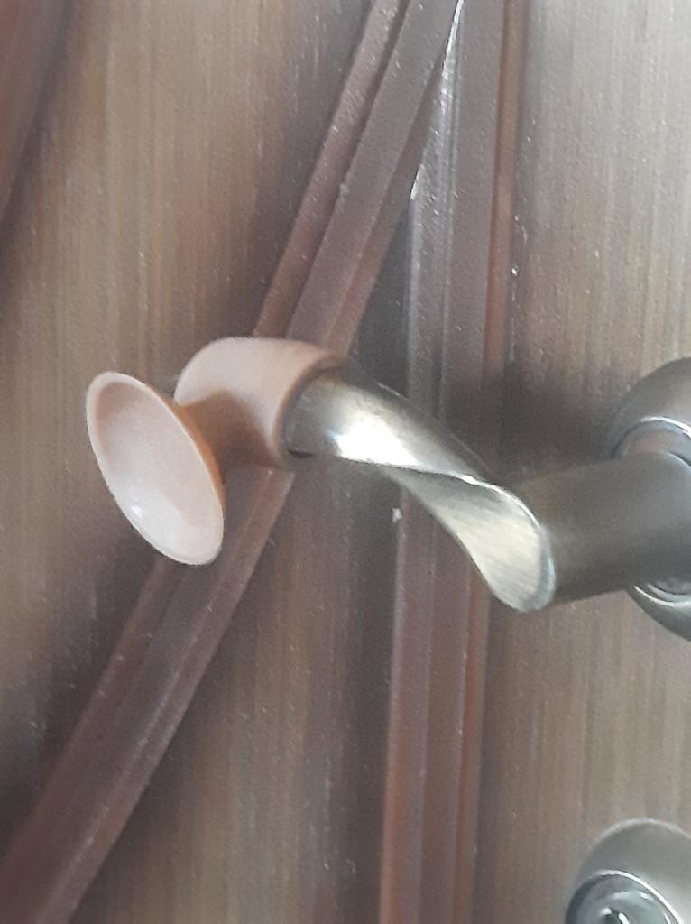 Put it on the door handles. They look a little rough, but they don’t knock on the wall. Thank you.