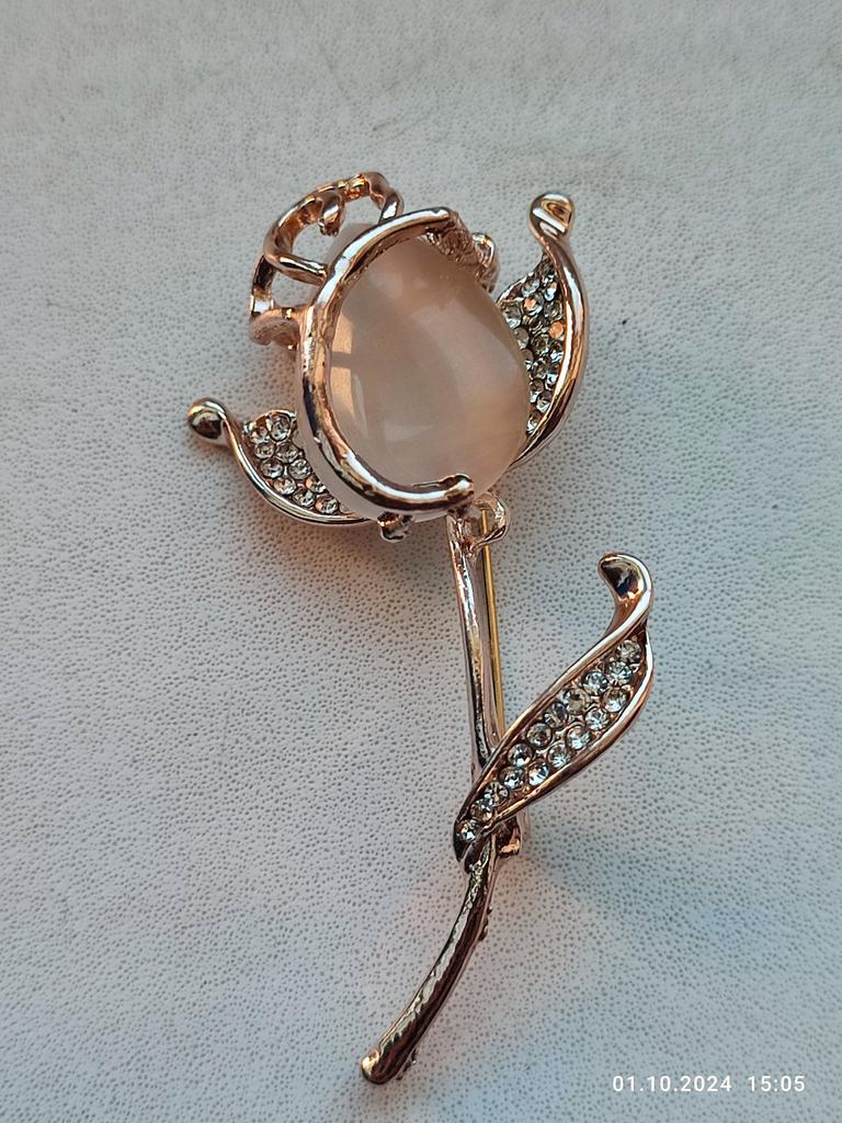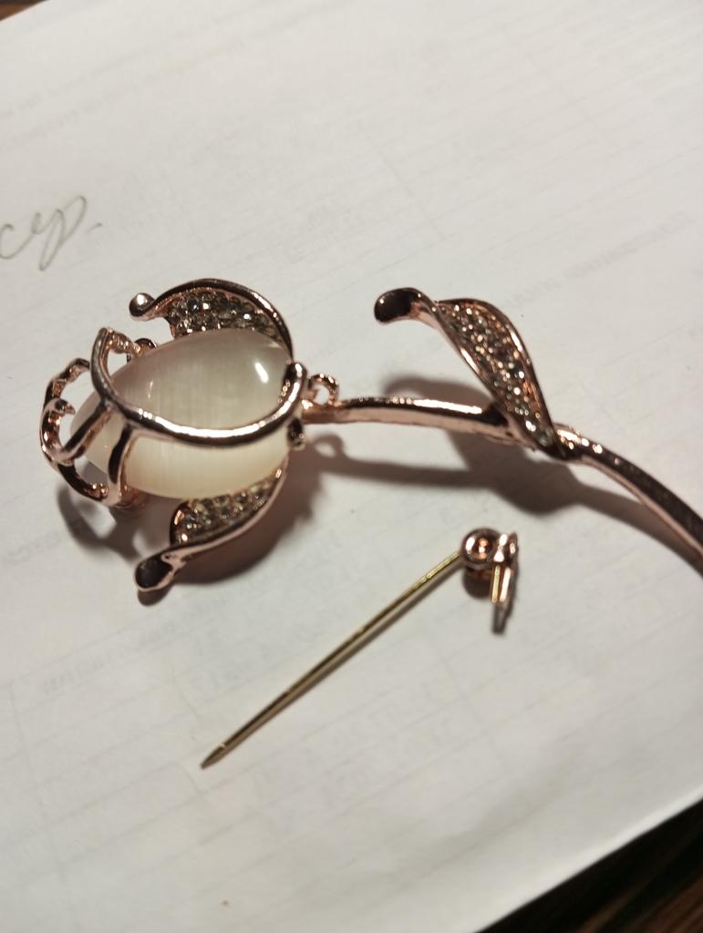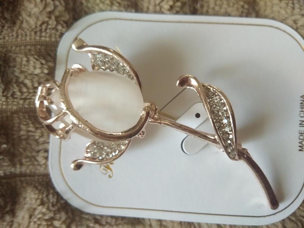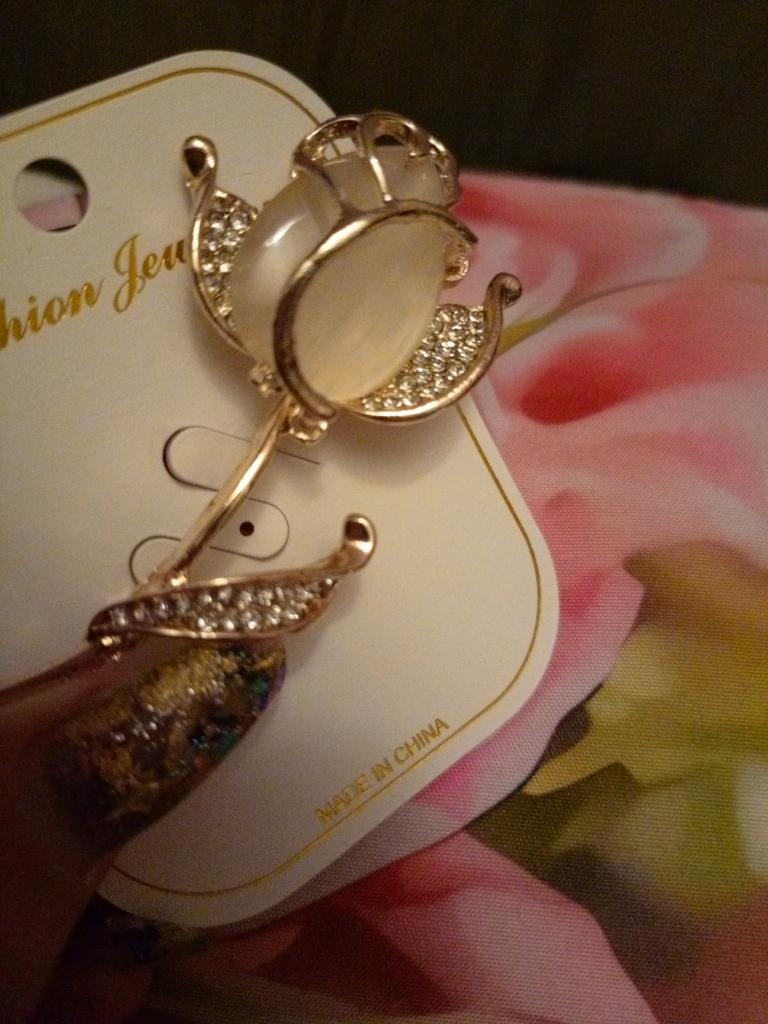 The brooch is very beautiful. The metal is of high quality, the rhinestones are all in place, I am satisfied. Thank you.