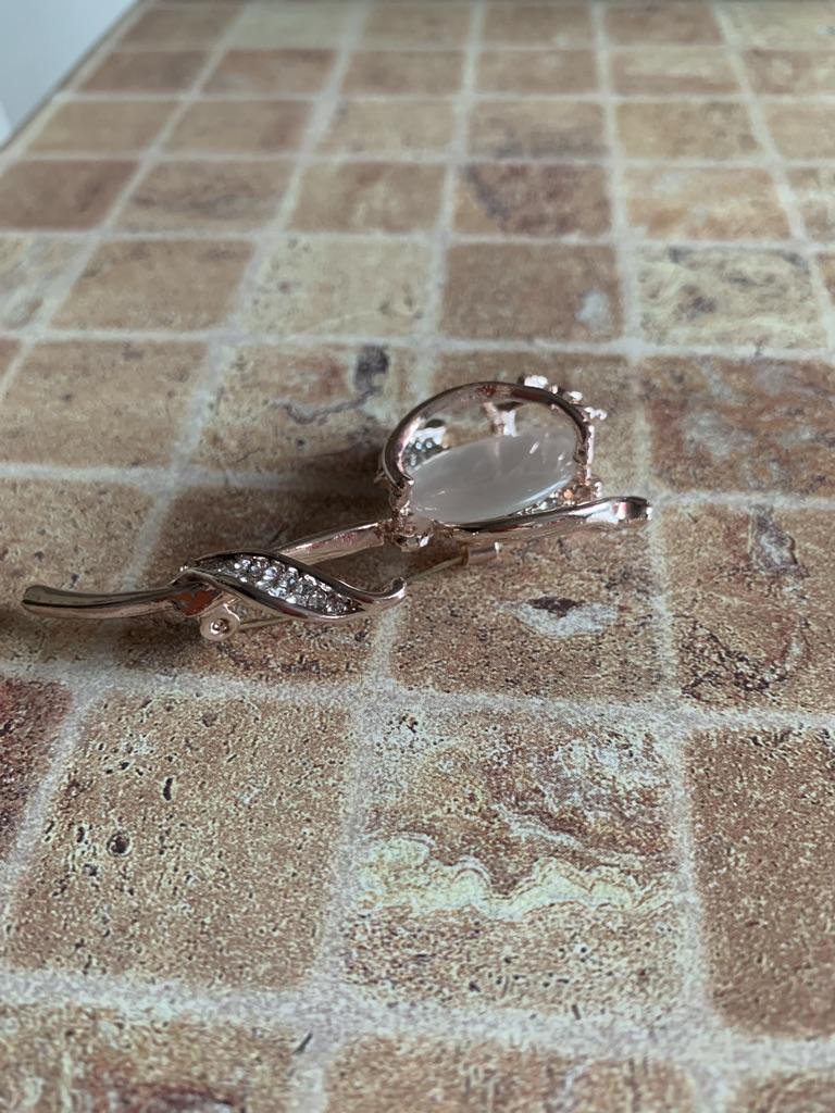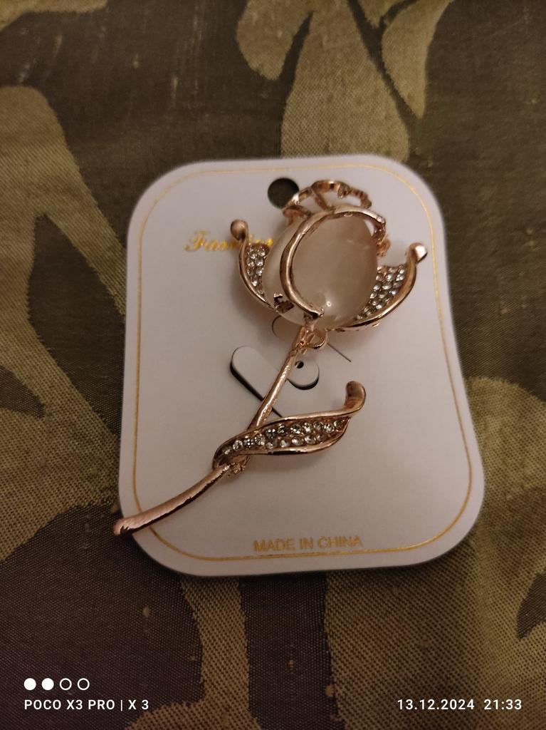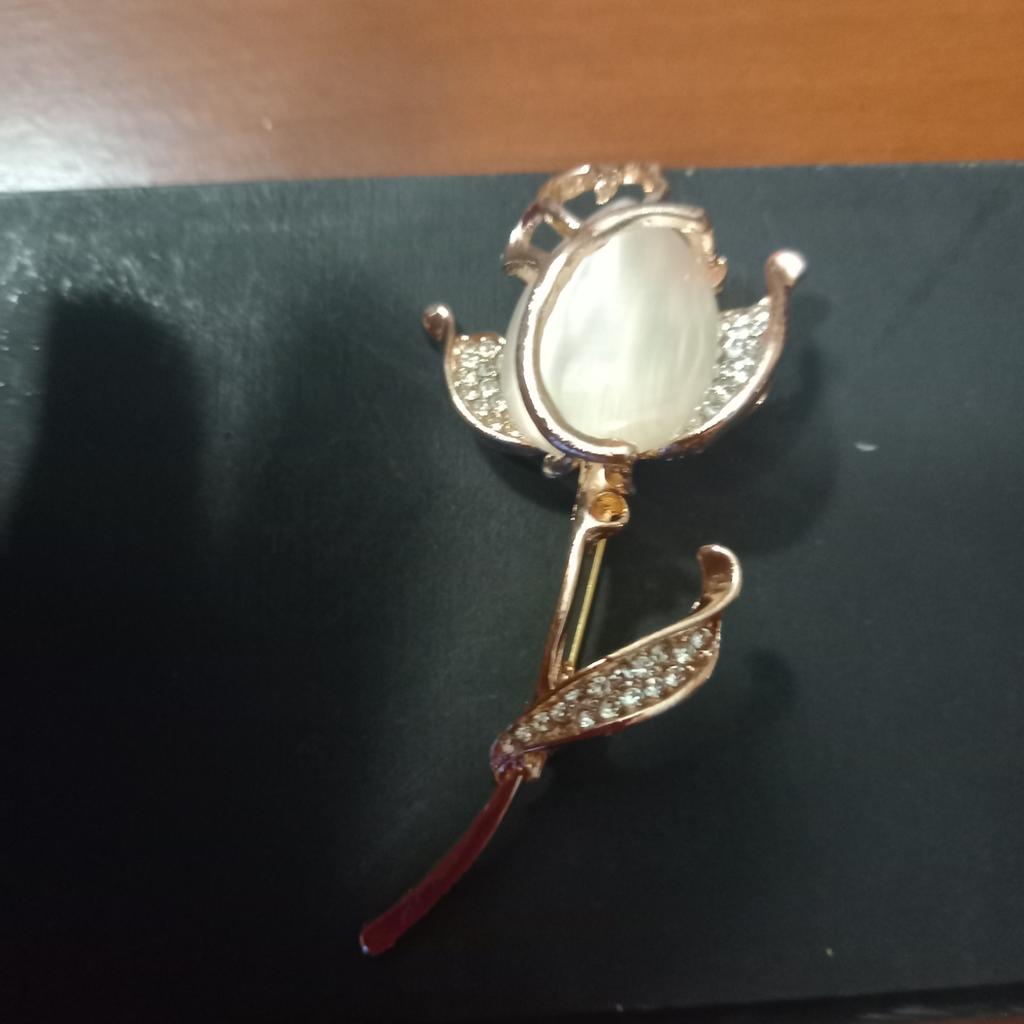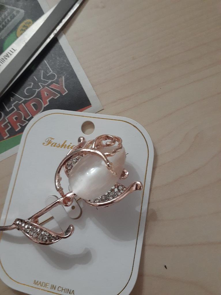 The brooch is very beautiful. The metal is of high quality, the rhinestones are all in place, I am satisfied. Thank you.