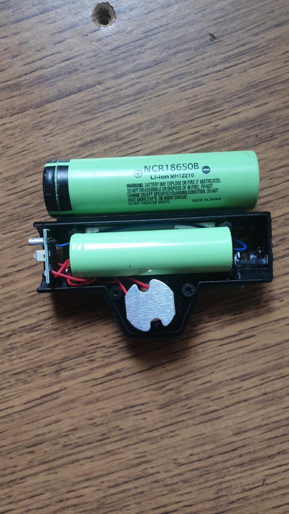 The description should include an 18650 battery. But in fact, a smaller one is installed and it is not clear which one