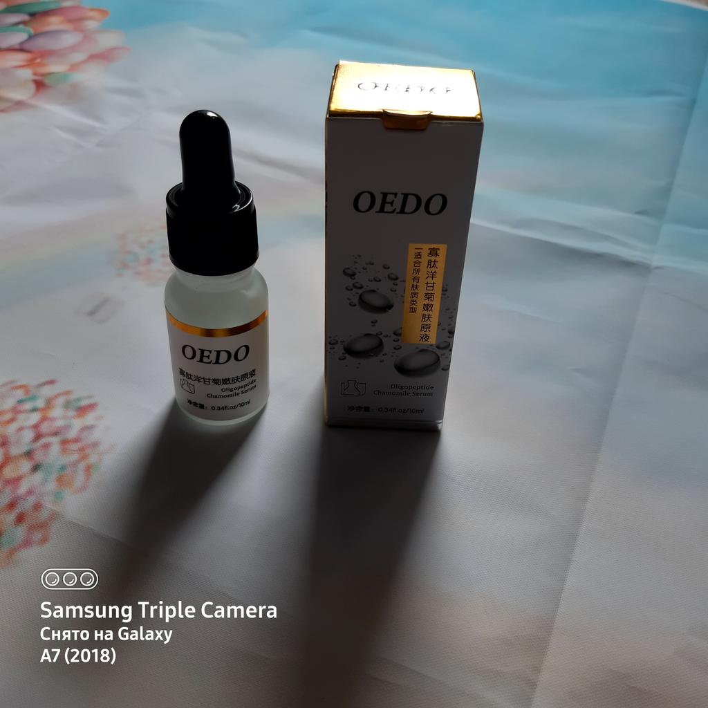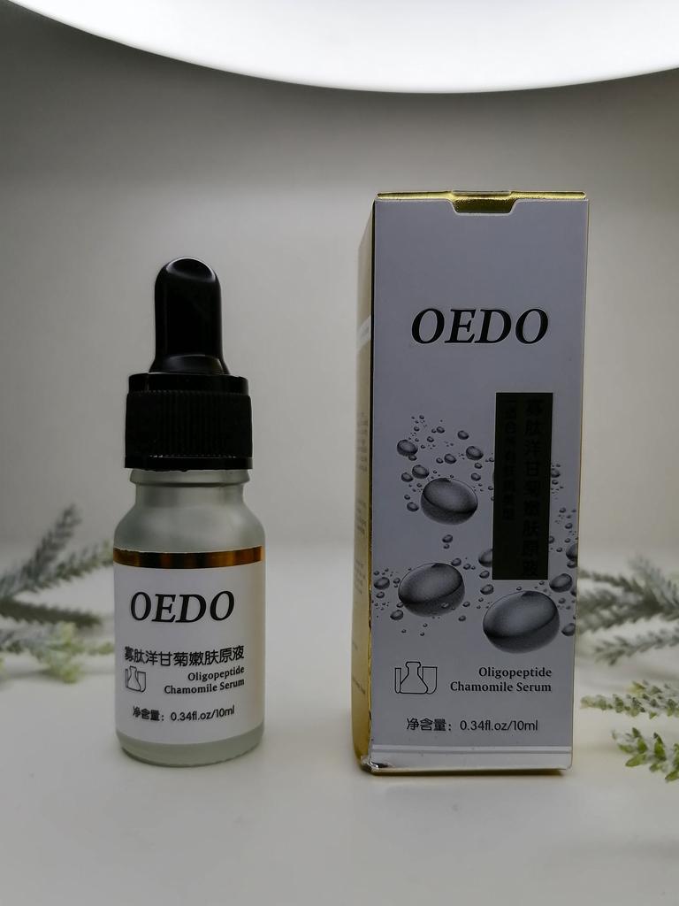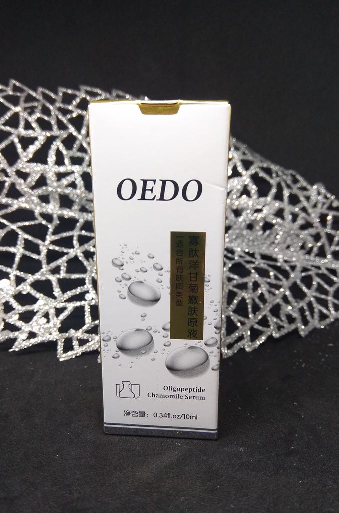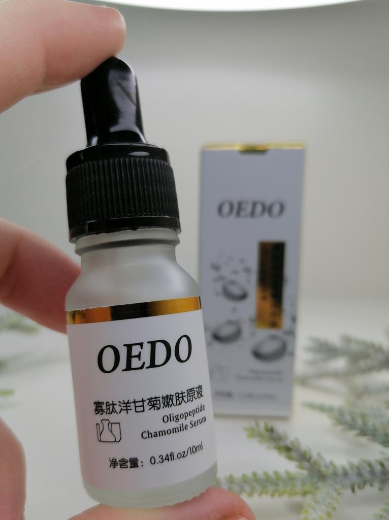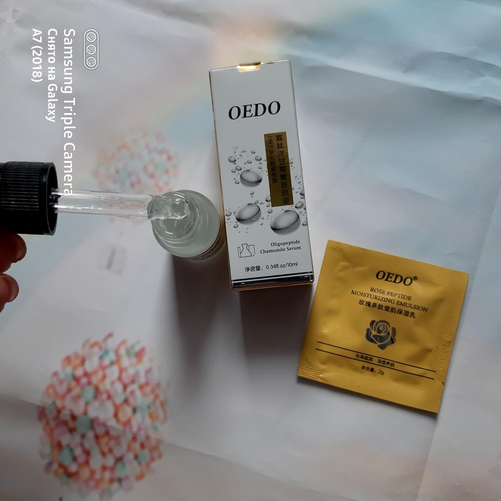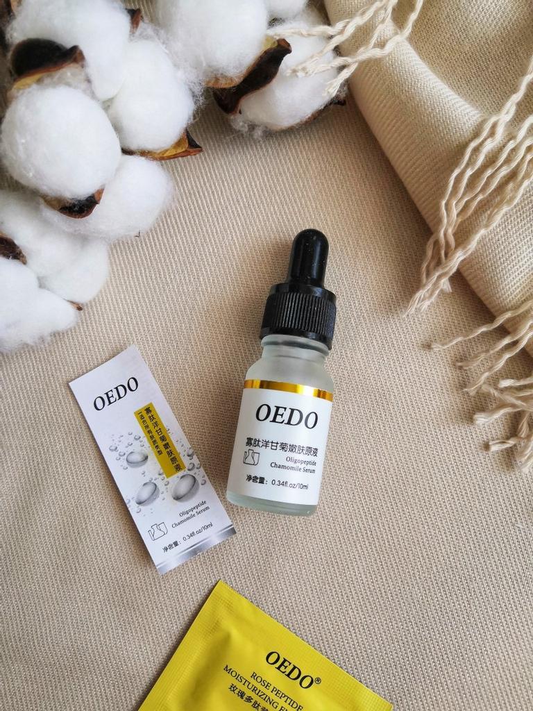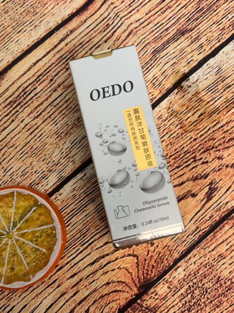 Oligopeptit Chamomile Face Serum brand: OEDO What does this product do: 🏵️ Softens 🏵️ Moisturizes 🏵️ Deeply repairs skin 🏵️ Eliminates acne and soothes skin 🏵️ Reduces wrinkles 🏵️ Slows down aging process of the skin This essence locks water inside the skin. How to use: Warm up the couple of drops between your palms and gently press your palms onto face, eye and neck for 10 seconds then massage untill it's fully absorbed by skin. Net amount is 15 ml. Absorbed by my skin so easily and quickly. It doesn't give greasy feeling. It almost odourless. I recommend it 👍 ✏️ If you buy one after seeing my review, please leave a comment. I would love to know that my review is useful.