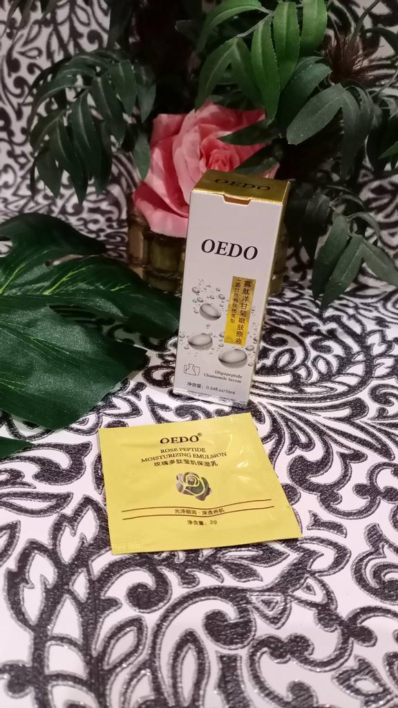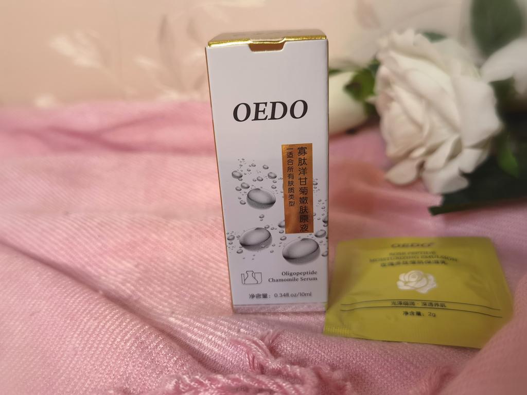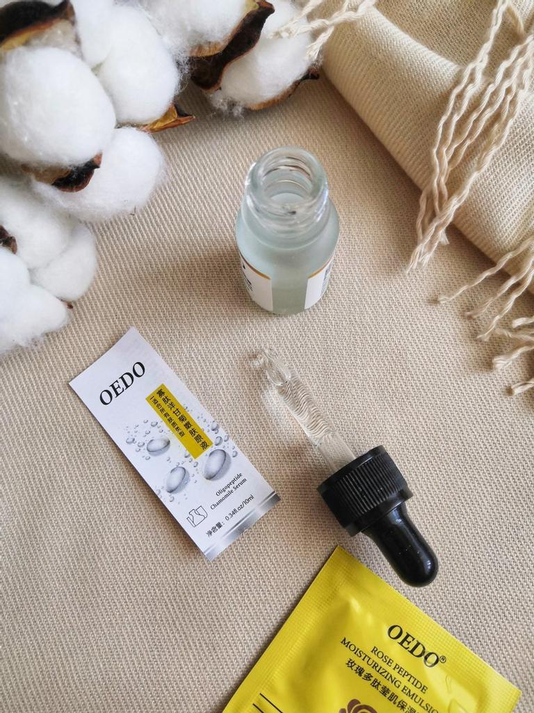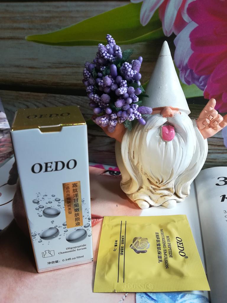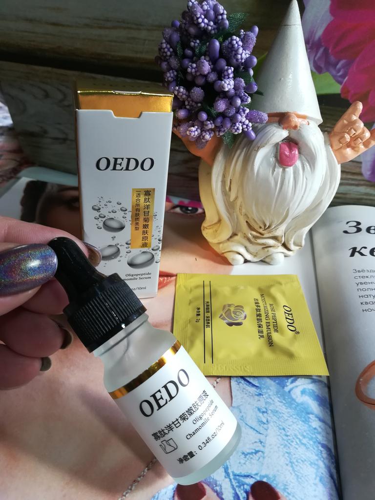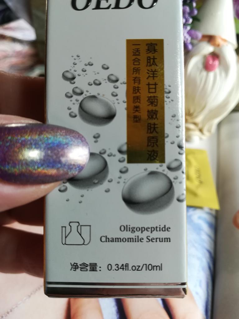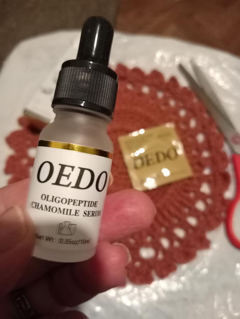 Oligopeptit Chamomile Face Serum brand: OEDO What does this product do: 🏵️ Softens 🏵️ Moisturizes 🏵️ Deeply repairs skin 🏵️ Eliminates acne and soothes skin 🏵️ Reduces wrinkles 🏵️ Slows down aging process of the skin This essence locks water inside the skin. How to use: Warm up the couple of drops between your palms and gently press your palms onto face, eye and neck for 10 seconds then massage untill it's fully absorbed by skin. Net amount is 15 ml. Absorbed by my skin so easily and quickly. It doesn't give greasy feeling. It almost odourless. I recommend it 👍 ✏️ If you buy one after seeing my review, please leave a comment. I would love to know that my review is useful.