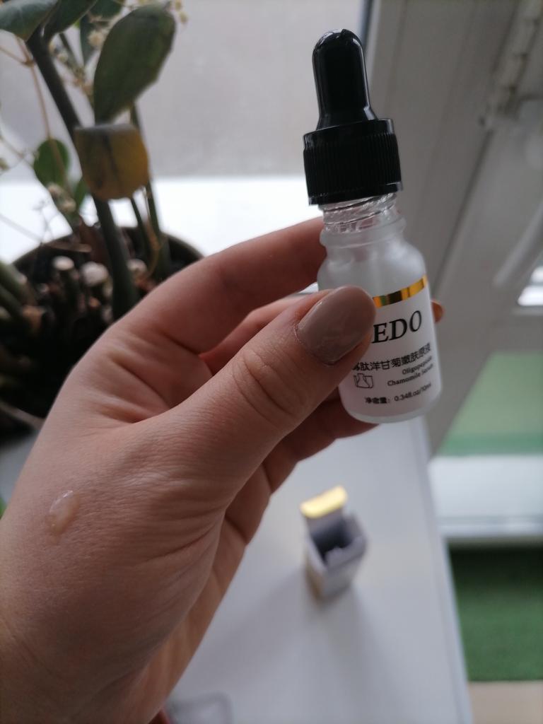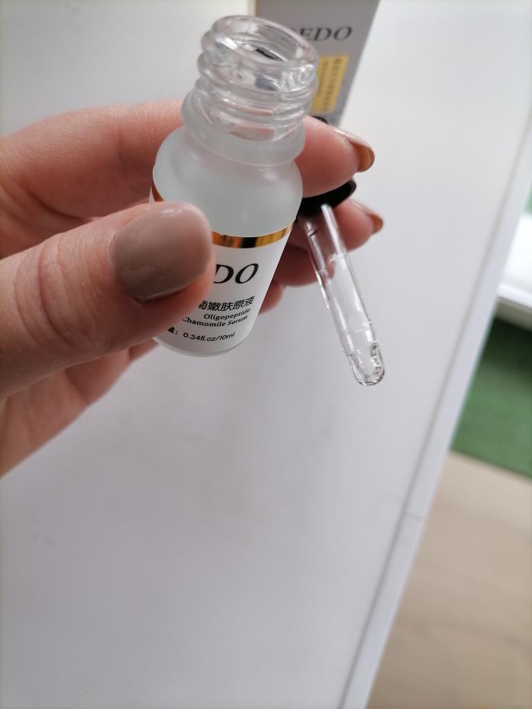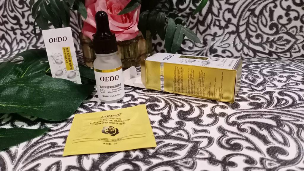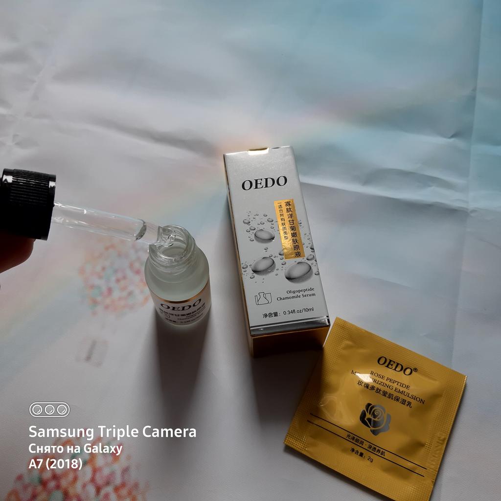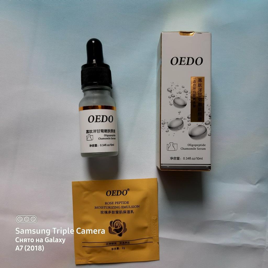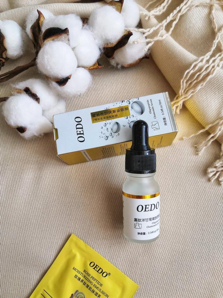 Oligopeptit Chamomile Face Serum brand: OEDO What does this product do: 🏵️ Softens 🏵️ Moisturizes 🏵️ Deeply repairs skin 🏵️ Eliminates acne and soothes skin 🏵️ Reduces wrinkles 🏵️ Slows down aging process of the skin This essence locks water inside the skin. How to use: Warm up the couple of drops between your palms and gently press your palms onto face, eye and neck for 10 seconds then massage untill it's fully absorbed by skin. Net amount is 15 ml. Absorbed by my skin so easily and quickly. It doesn't give greasy feeling. It almost odourless. I recommend it 👍 ✏️ If you buy one after seeing my review, please leave a comment. I would love to know that my review is useful.