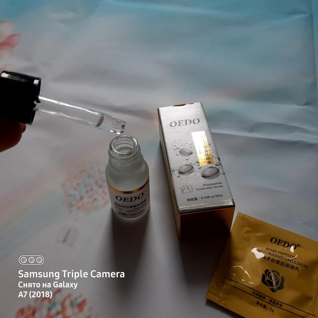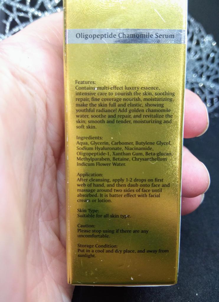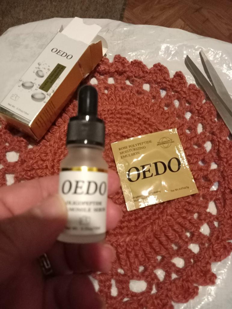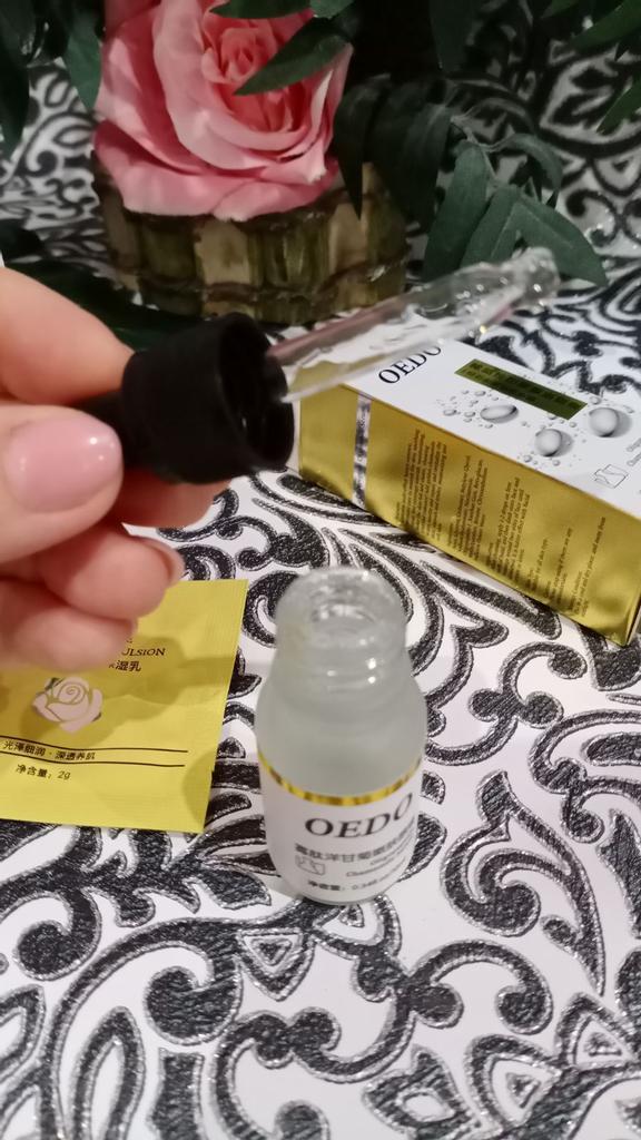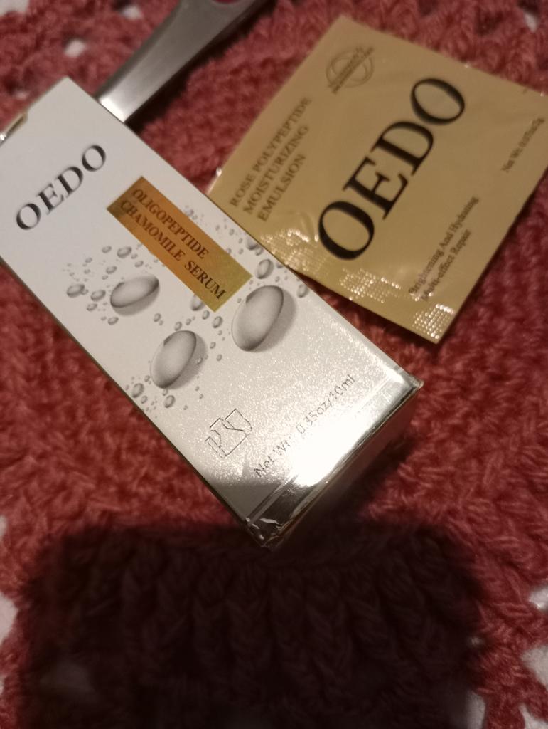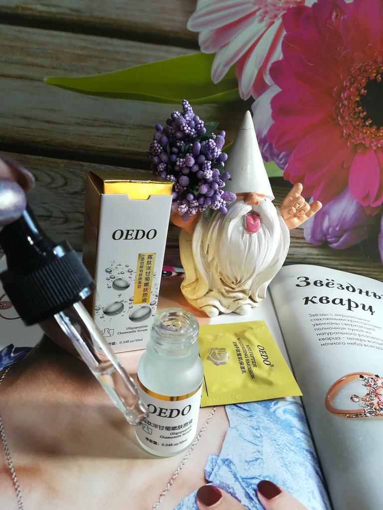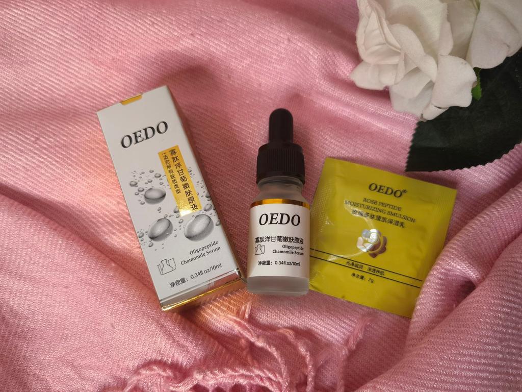 Oligopeptit Chamomile Face Serum brand: OEDO What does this product do: 🏵️ Softens 🏵️ Moisturizes 🏵️ Deeply repairs skin 🏵️ Eliminates acne and soothes skin 🏵️ Reduces wrinkles 🏵️ Slows down aging process of the skin This essence locks water inside the skin. How to use: Warm up the couple of drops between your palms and gently press your palms onto face, eye and neck for 10 seconds then massage untill it's fully absorbed by skin. Net amount is 15 ml. Absorbed by my skin so easily and quickly. It doesn't give greasy feeling. It almost odourless. I recommend it 👍 ✏️ If you buy one after seeing my review, please leave a comment. I would love to know that my review is useful.