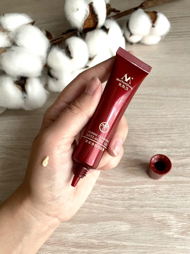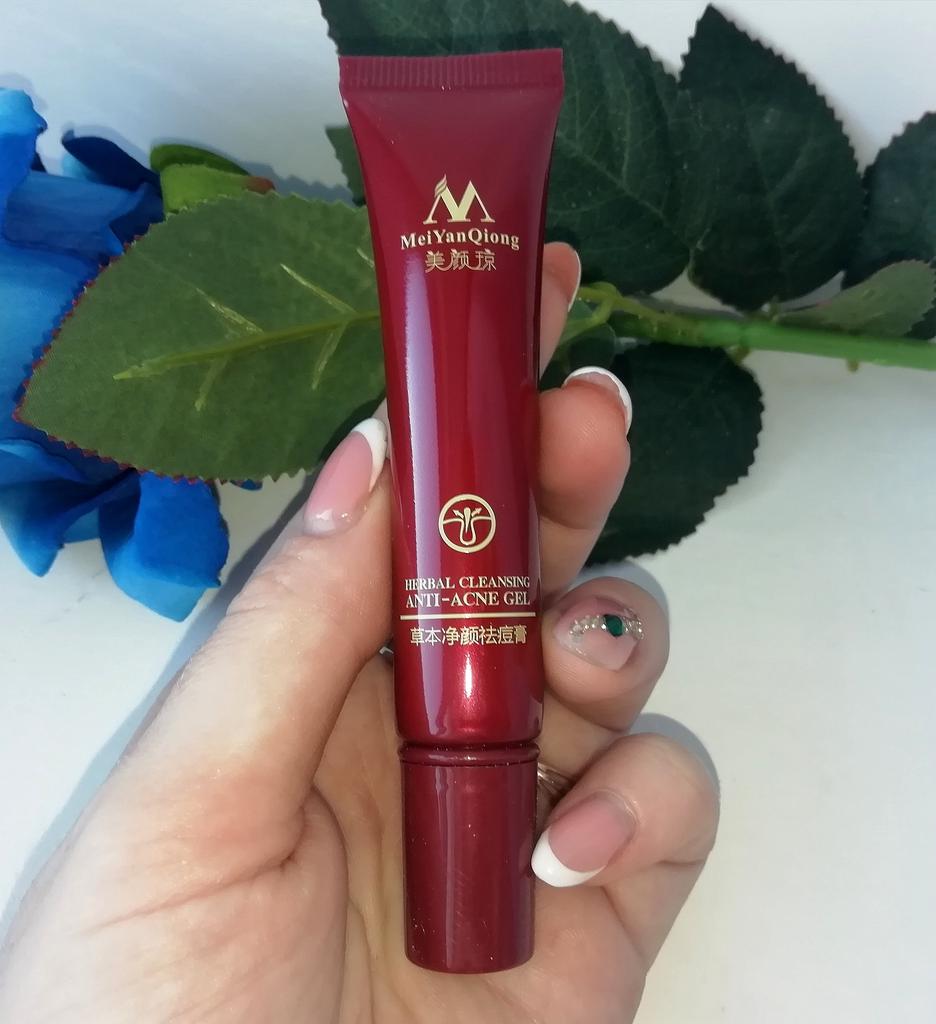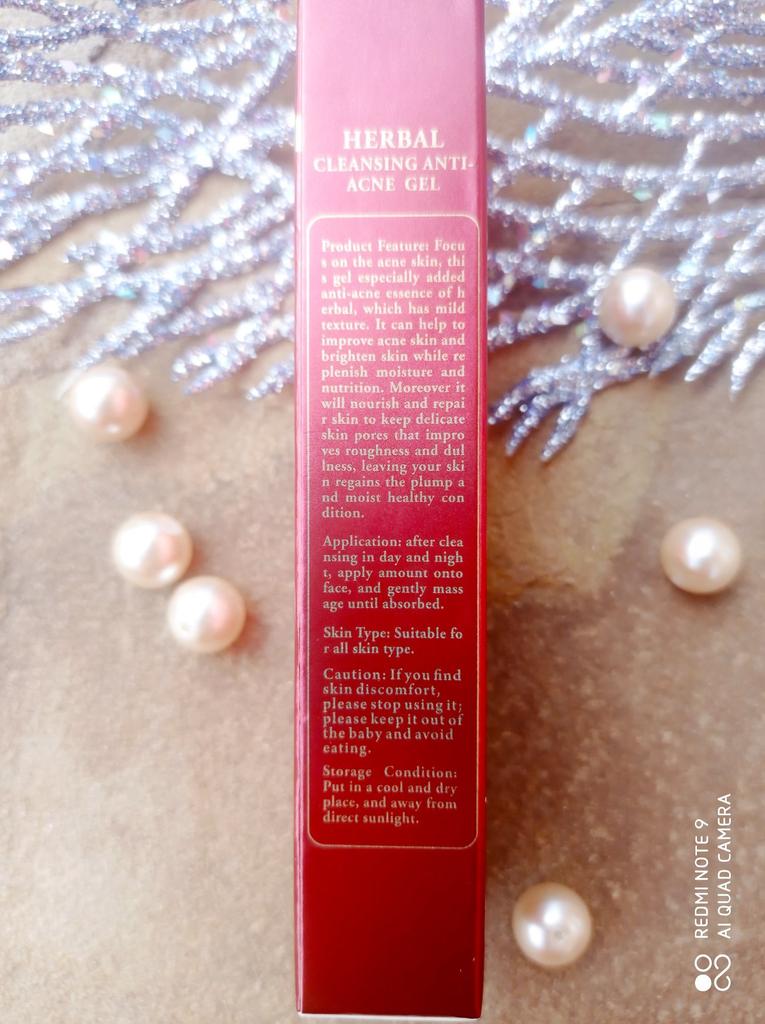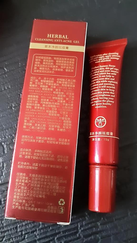 Acne Treatment Cream It is written "Herbal Cleansing .... Acne Gel" but i think the word "cleansing" is confusing. Because you are not suppose to wash your face with this product. Also the word "gel" doesn't suit well, because it's texture is more like cream. You can check the photo that I took. But these things don't bother me much because what matters to me is it's effect. And this cream really works. I am using three brands lately for acne treatment and for preventing breakouts. This is one of them and since I started using them, I only have few for a day, then it disappears. Of course each acne leaves a red spot and I also treat them. Normally my oily skin produce a lot of acne if I wear makeup for several days. And it should get worse with two masks that I wear on top of eachother but I really have few and that's like a miracle. It has total 15g