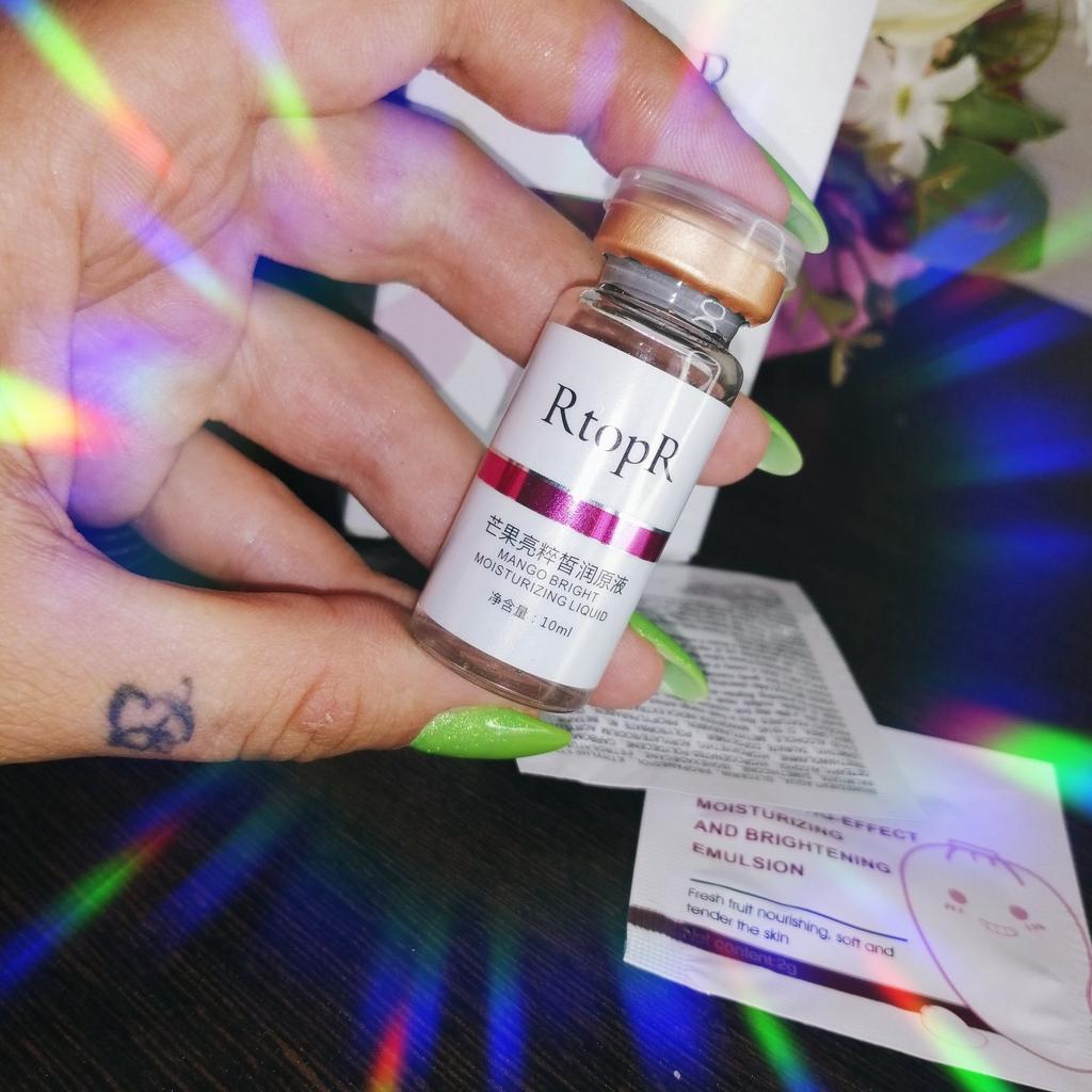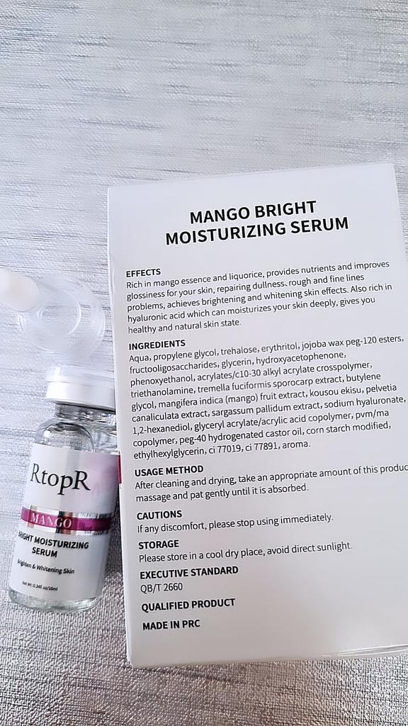 Mango Face Serum Brand: RtopR Facial serums become unreplaceable part of my skincare routine. I use this serum day and night, after cleaning my face. And I prefer to apply cream on top of it. I also wear this serum under makeup. Feels like i have an extra barrier between my skin and makeup. 👍 My skin easily absorbs this serum. 👍 It gives health glow to skin. 👍 Suitable for all skin types. I have a combination skin. I use it day and night This serum is for: 🔸Whitening 🔸Moisturizing 🔸Anti-wrinkle 🔸Hydrating 🔸Anti aging 🔸Removing dark spots 🔸Acne treatment Comes within a sealed box. Total amount is 10ml.